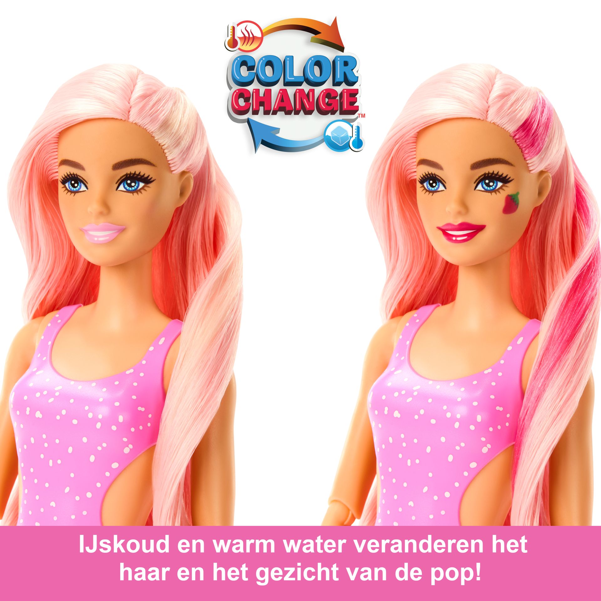 - Met ijskoud water toveren kids het vrolijke haar en de make-up van de pop tevoorschijn en met warm water veranderen ze alles weer terug - en die verrassing kunnen ze eindeloos herhalen!