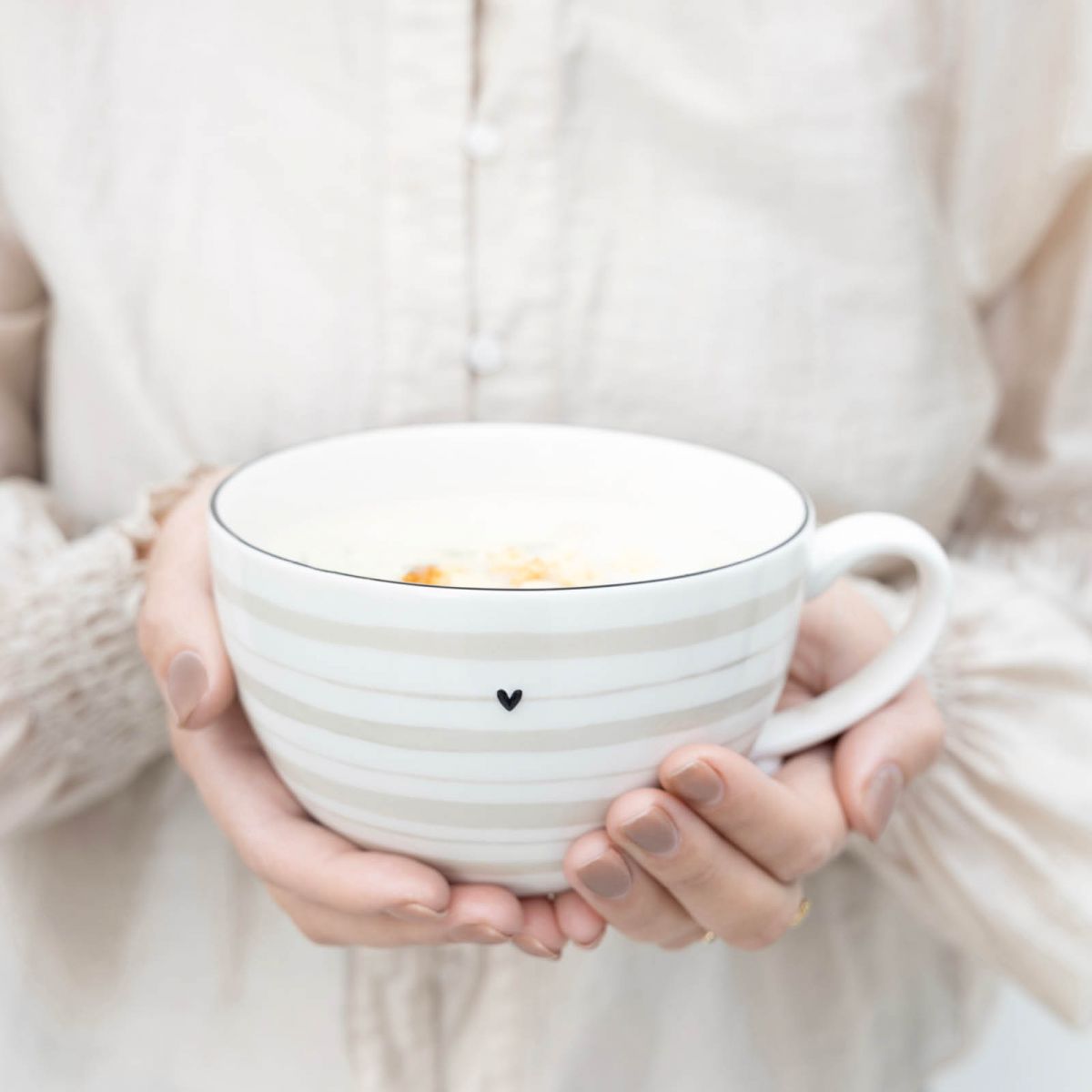Bastion Collections Bowl White/Watercolour Natural Stripes 400ml - Keramiek - 13x8 cm - Soepkom