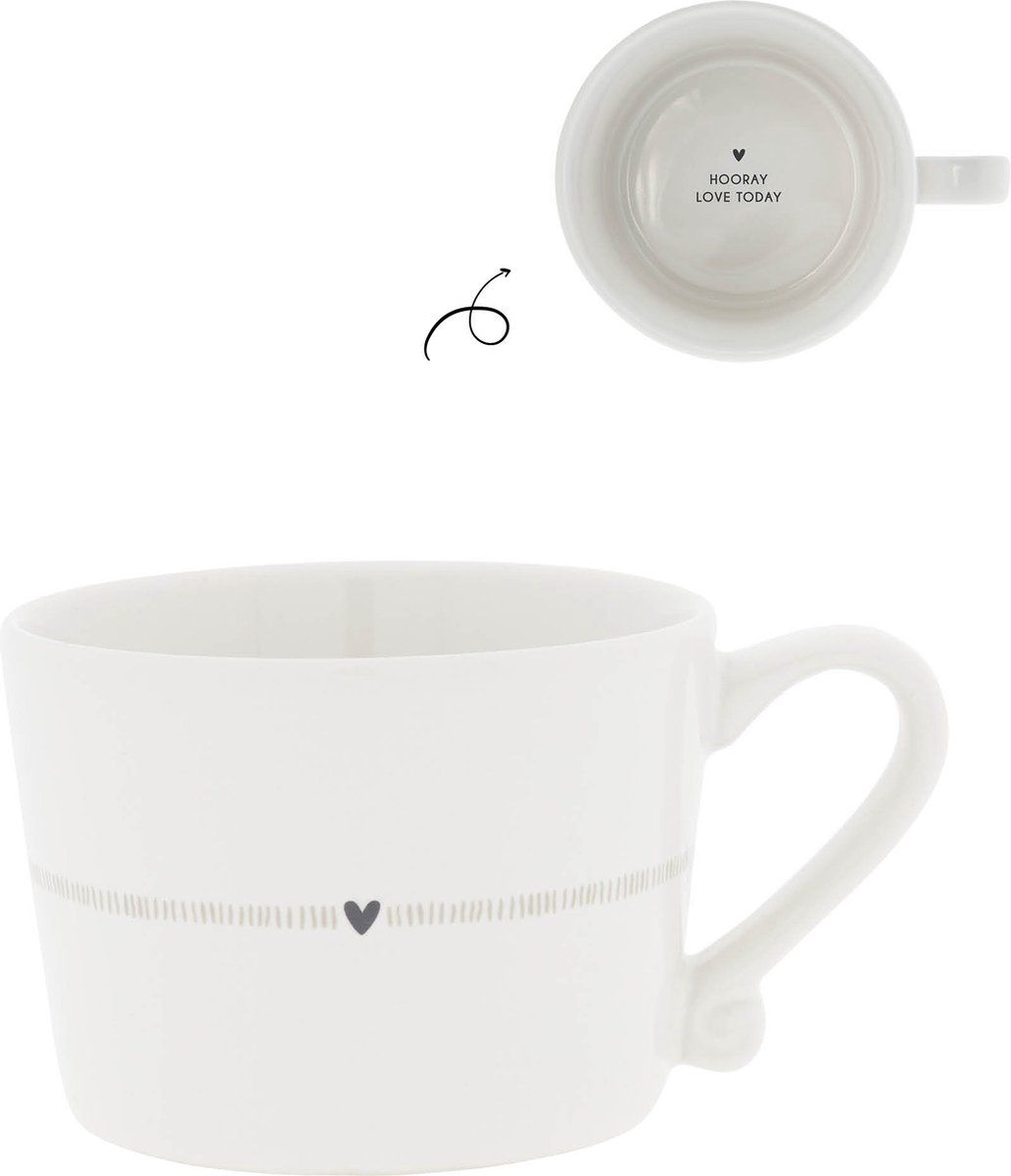 Bastion Collections Koffietas Heart & Stripes 150ml - Keramiek - 8.5x6 cm