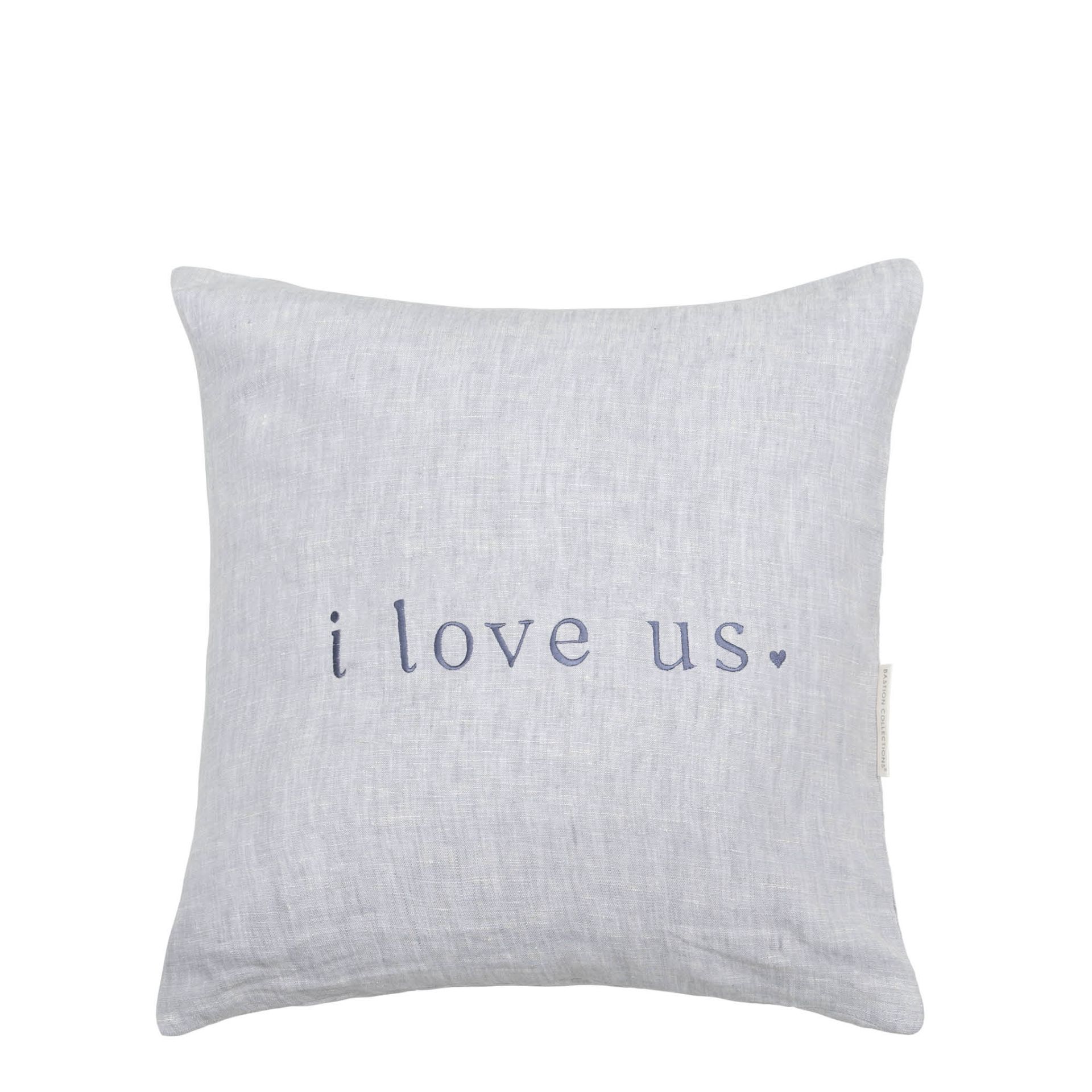 Bastion Collections Kussenhoes I Love Us 50x50 cm - 100% Linnen - Blauw