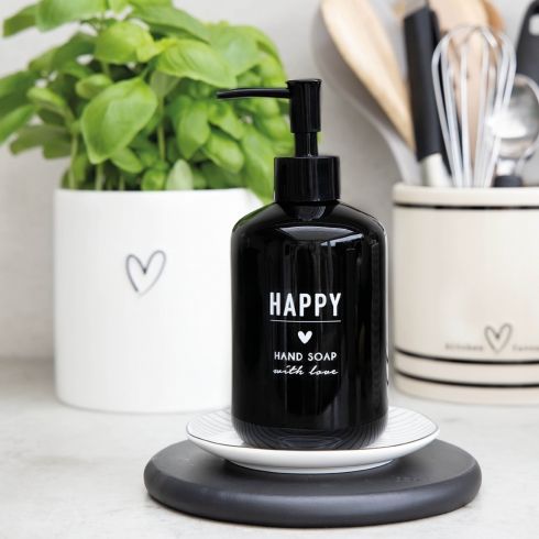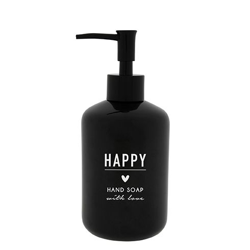 Bastion Collections Zeepdispenser Happy 350ml - Keramiek - 8x18 cm - Zwart