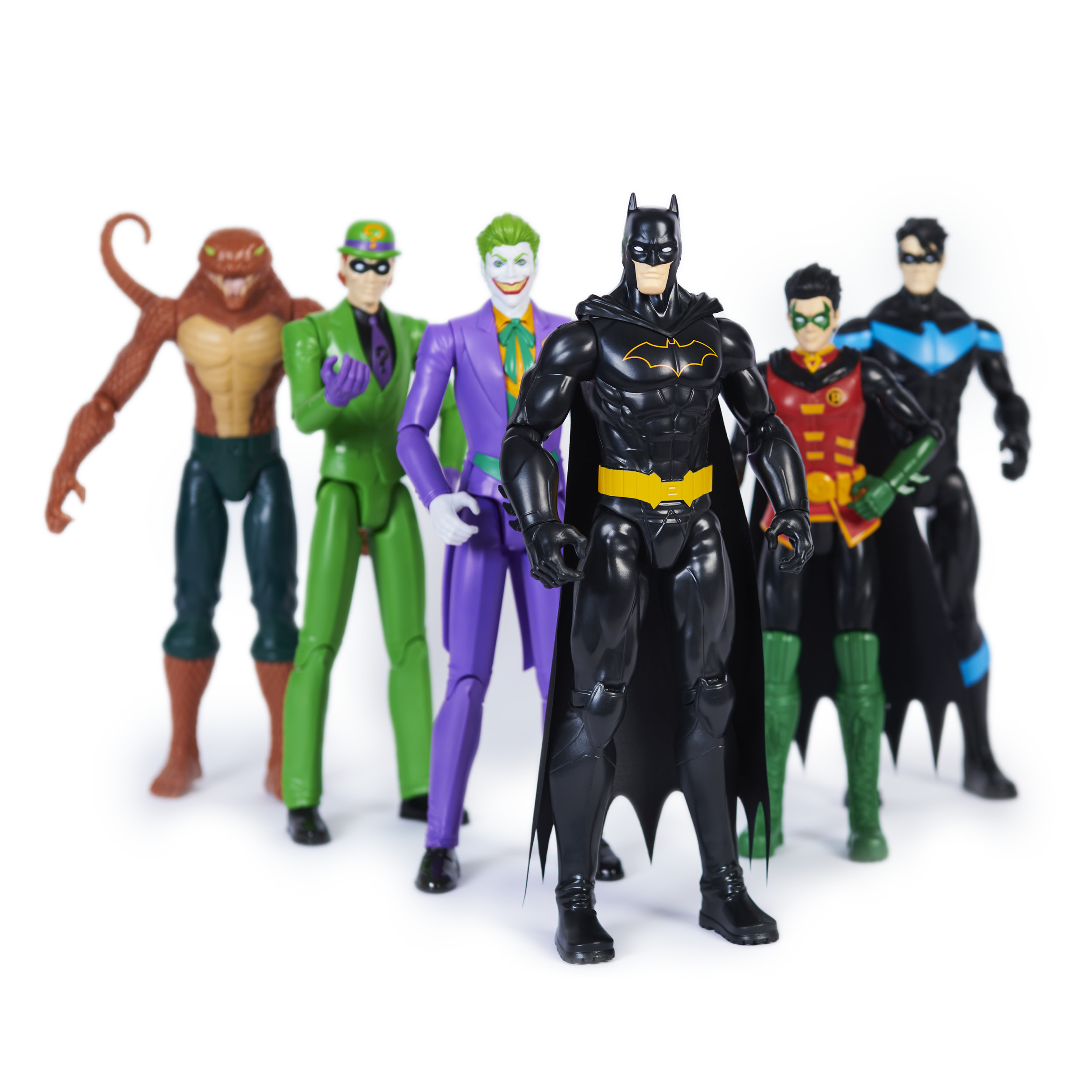 Deze set bevat 6 actiefiguren van de grootste superhelden en superschurken uit Gotham City. Haal Batman, Robin, Nightwing, The Joker, de Riddler en Copperhead in huis
