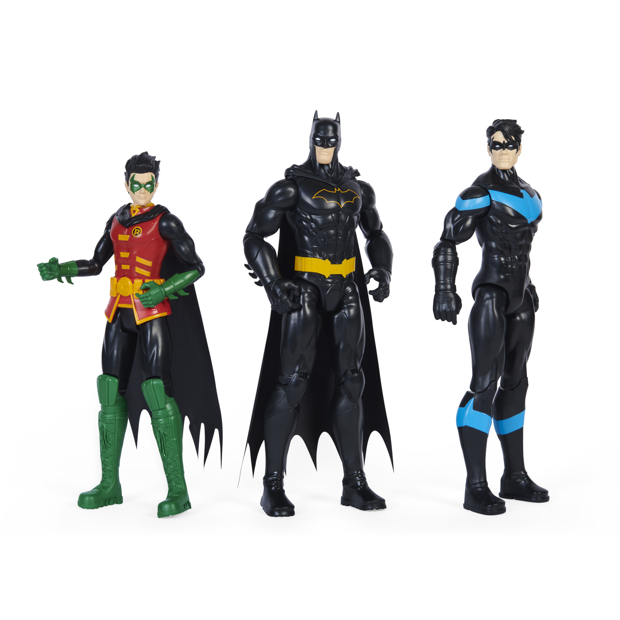 Creëer je eigen epische Batman-avonturen met de Batman-actiefiguren van 30 cm. Deze set van 6 bevat Batman, Robin, Nightwing, The Joker, de Riddler en Copperhead. Elk actiefiguur heeft 11 knikpunten, een stoffen cape - bij Batman en Robin - en een gedetailleerde comic-stijl die je favoriete Batman-personages tot leven brengt. Werk samen met Batman, Robin en Nightwing om The Joker, The Riddler en Copperhead te bestrijden. Help mee om Gotham City te bevrijden van de meest kwaadaardige superschurken. Laat je fantasie de vrije loop en plaats je actiefiguren terwijl je je eigen Batman-verhaallijnen en -gevechten bedenkt. Haal je favoriete personages in huis met de Batman-set van 6 actiefiguren van 30 cm.