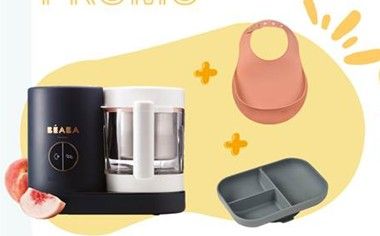 Beaba Babycook Neo Night Blue + Bord Silicone Vakjes Mineral Green + Slab Silicone Terracotta