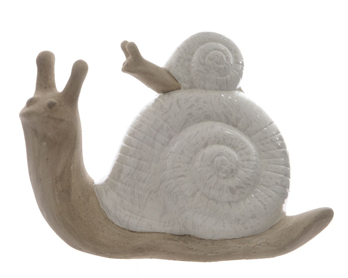 Beeld Slak met Jong - Keramiek 32x14x22cm - Wit