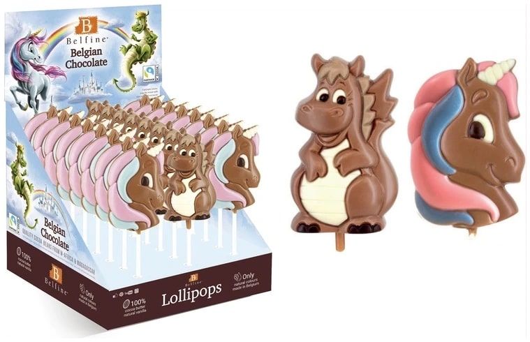 Belfine Chocoladelolly Eenhoorn & Draak 25g