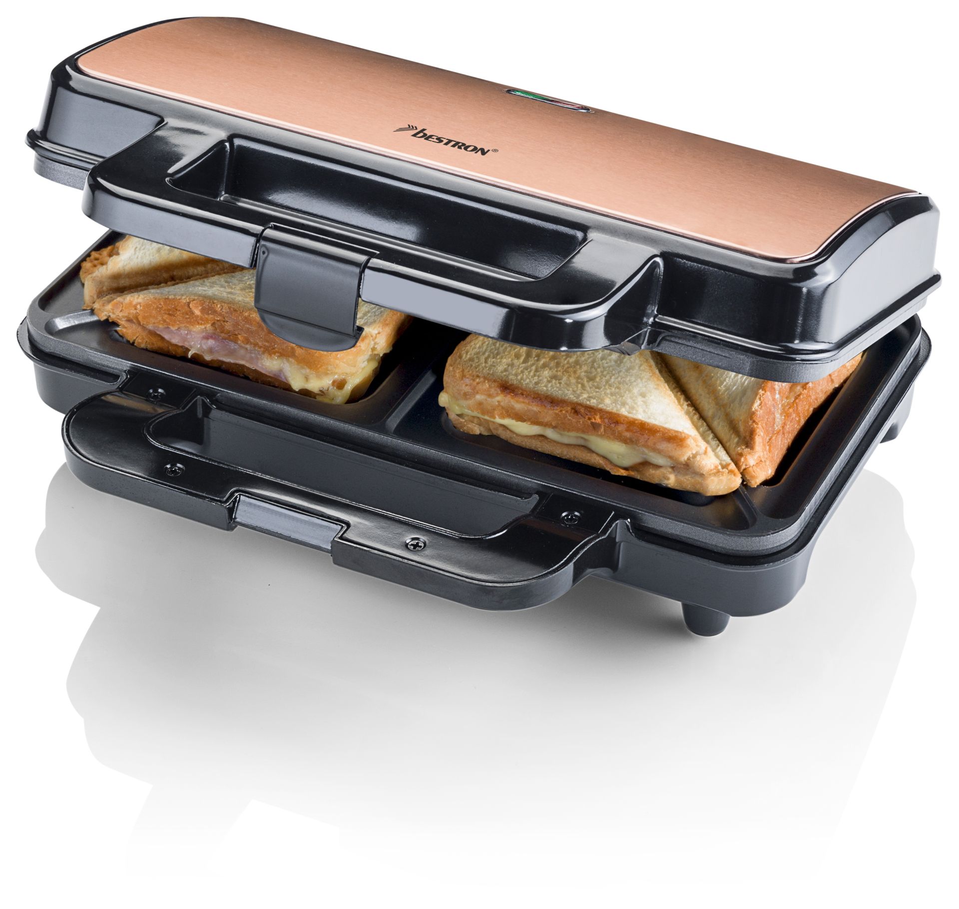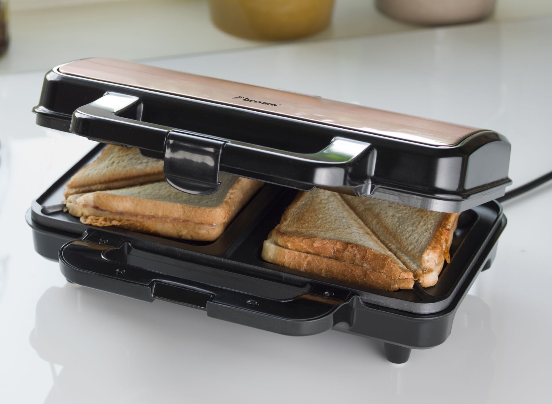 Bestron croquemaker ASM90XLCO, Tosti 900 Watt, voor 4 sandwiches, kopperline