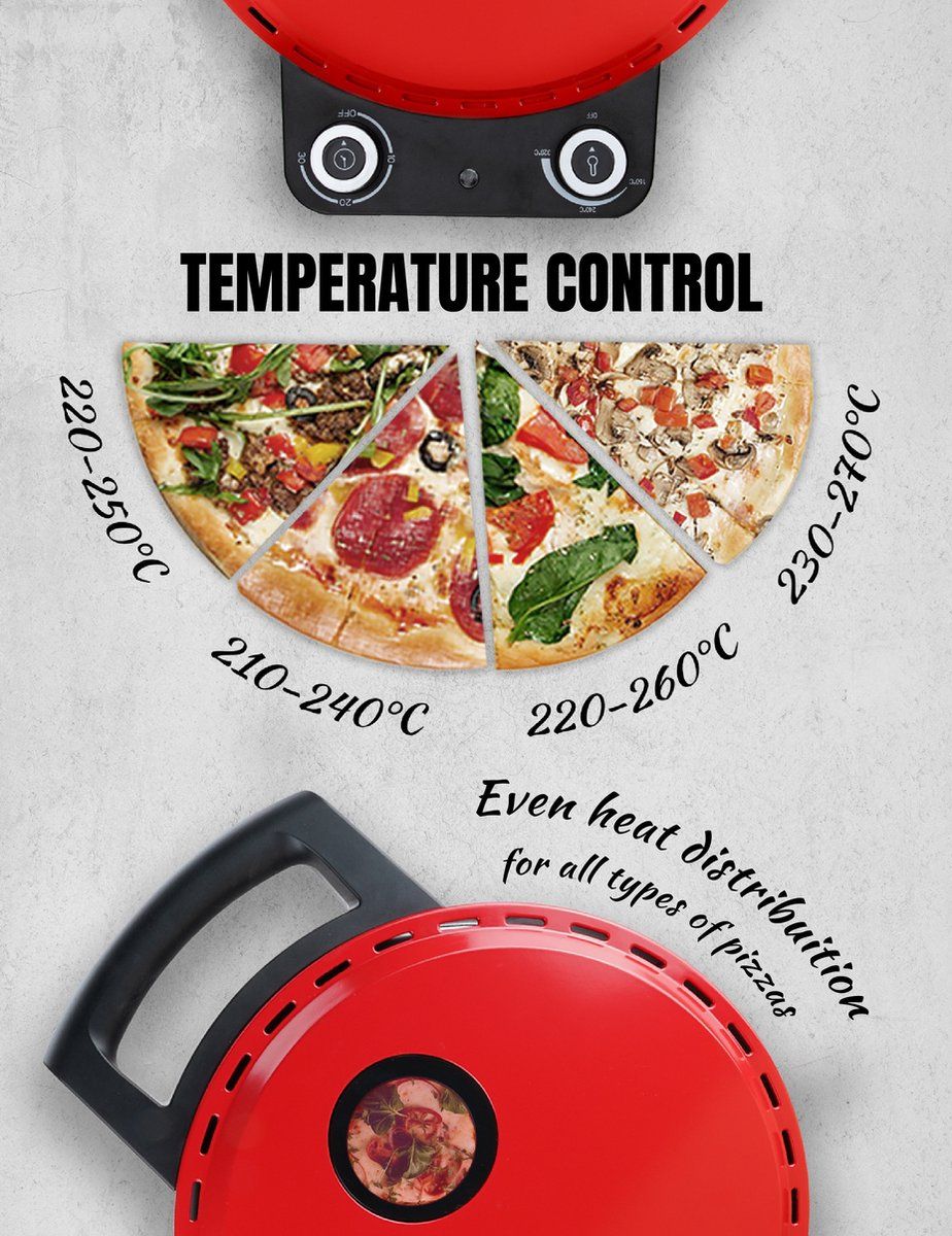 Bestron Pizzasteenover, Pizza oven met steen, 30 cm, 1500 Watt, Rood