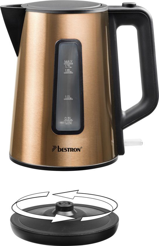 Bestron Waterkoker AWK1000CO, 1.7 Liter 2200 Watt, Snoerloos, Inox koper kleur