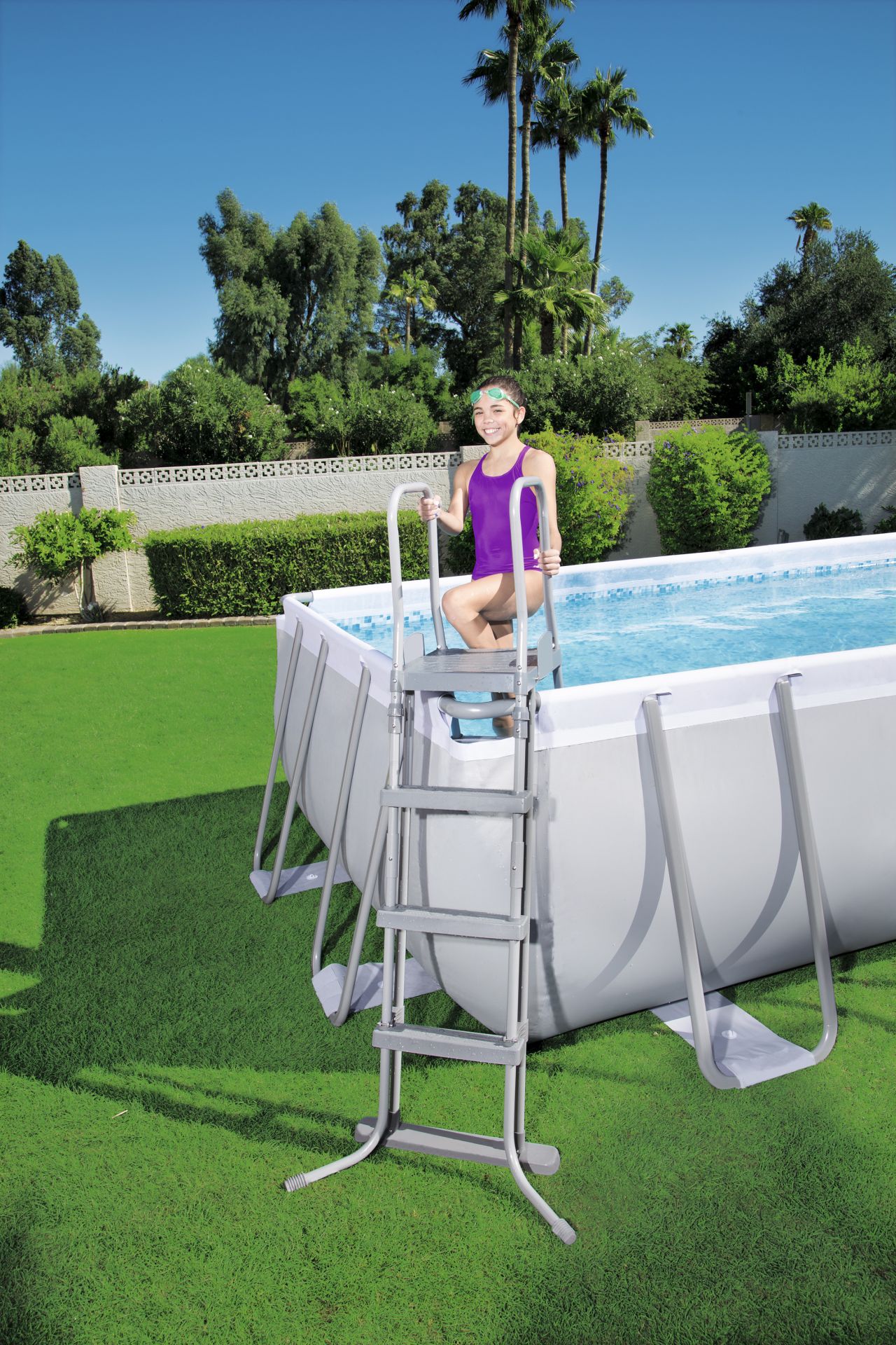 het hele zwembad. Deze complete Power Steel™ zwembadset biedt de hele