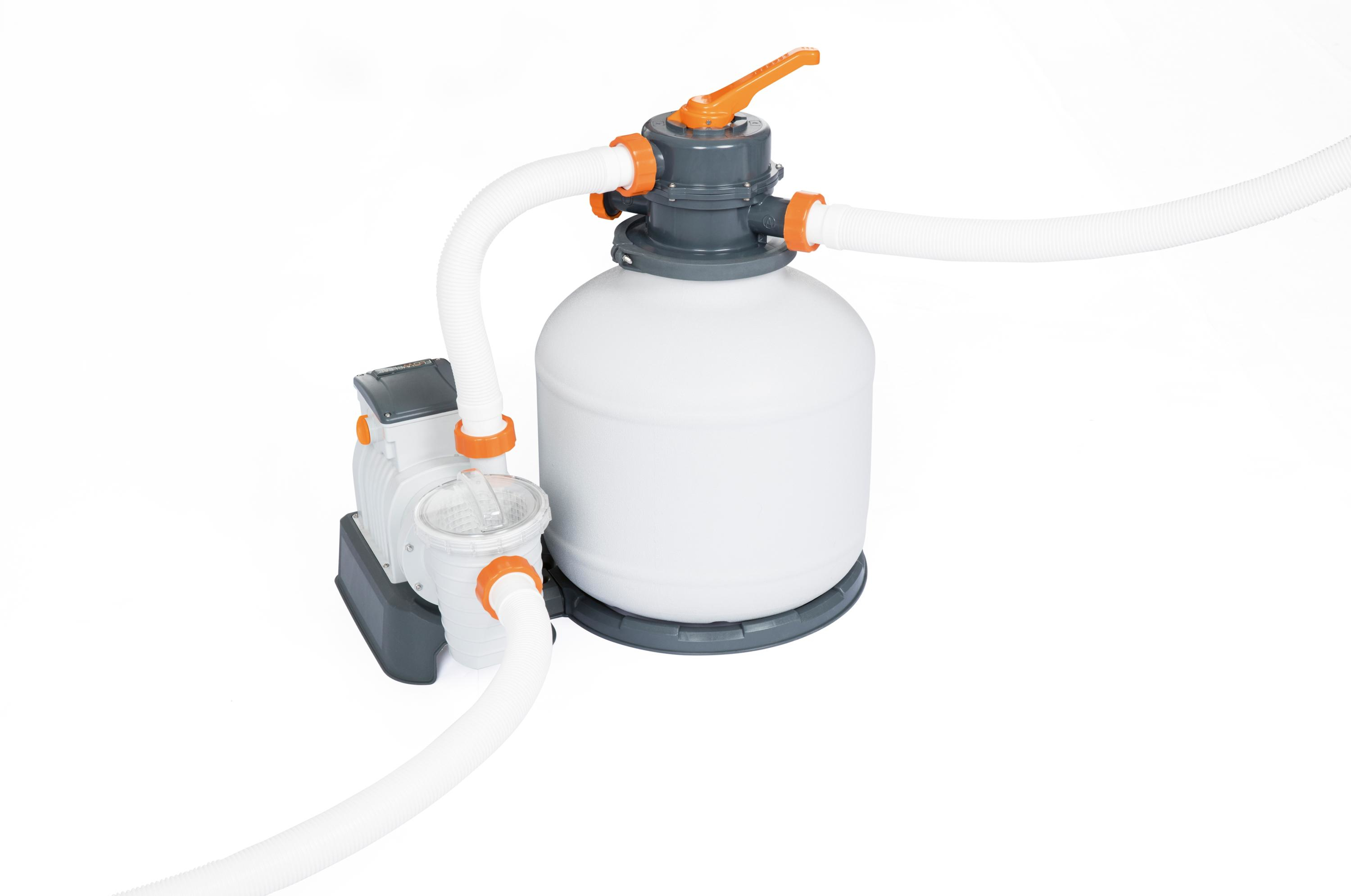 - Inclusief zandfilterinstallatie (5.678 l/h), Flowclear veiligheidsladder (132 cm), Flowclear pvc-afdekzeil, ChemConnect chemische doseerder