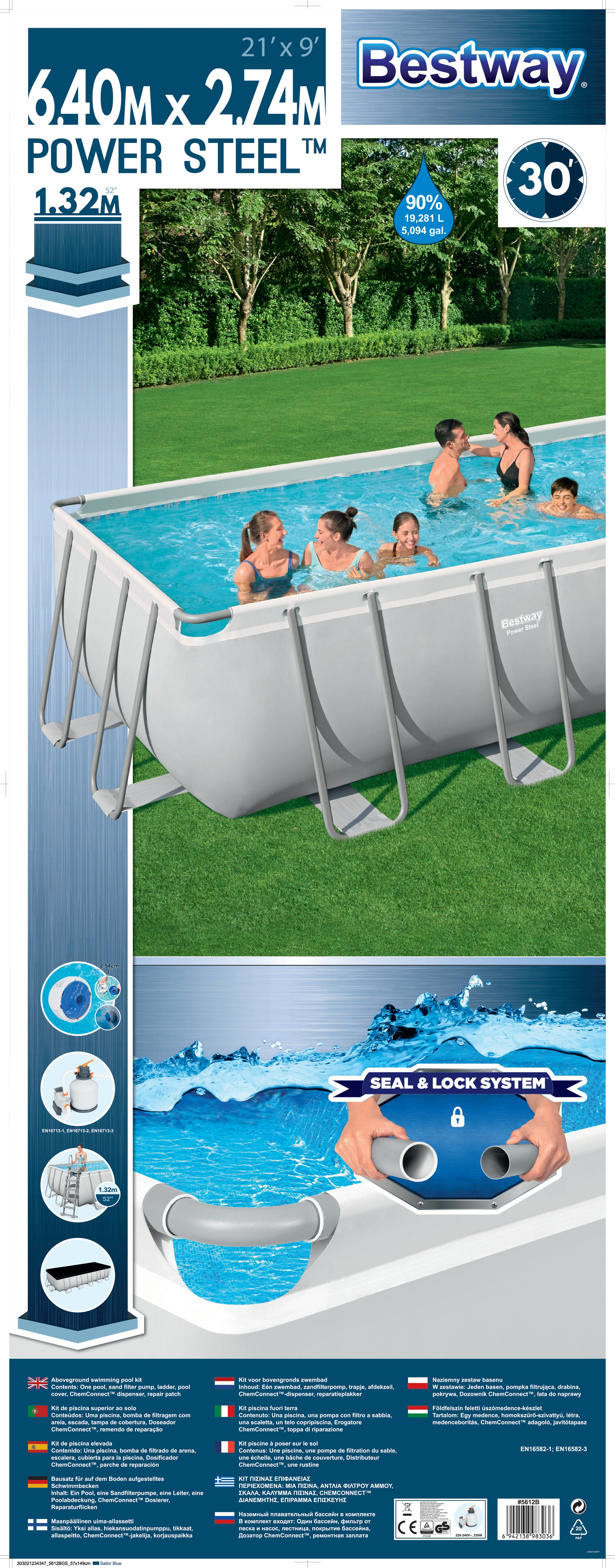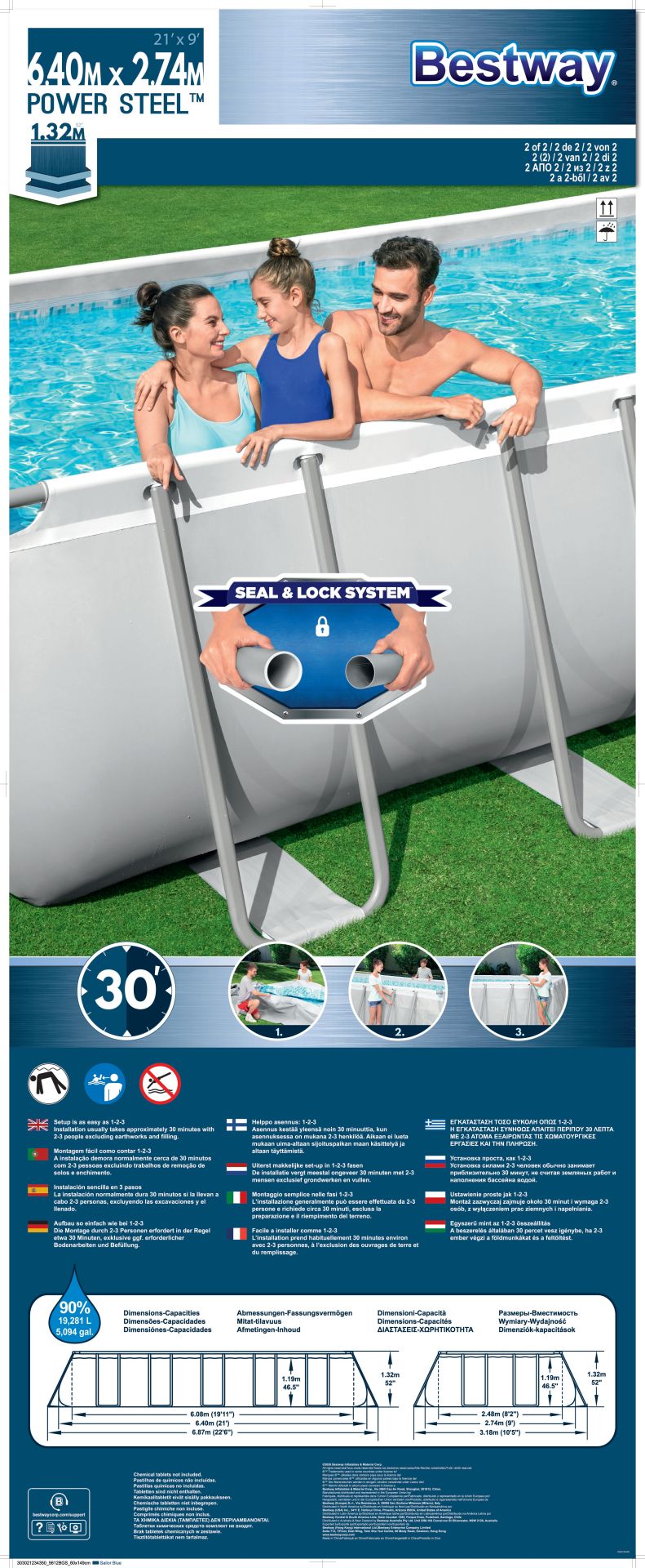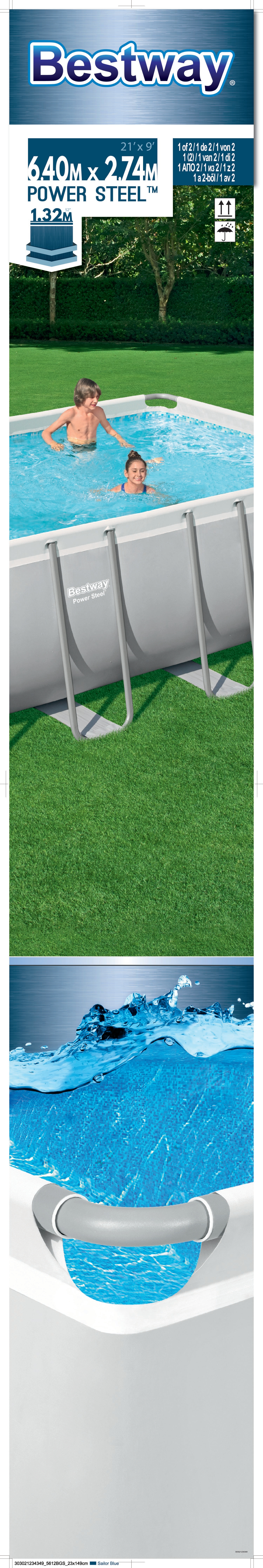 Het Bestway Power Steel zwembad is perfect voor een zomer vol plezier in de zon. Het zwembad heeft een supersterk frame van stalen buizen die zonder gereedschap gewoon in elkaar te klikken zijn. Ook de liner van het zwembad is extreem stevig en bovendien lekbestendig, met 3-laags pvc en een gerasterde tussenlaag.