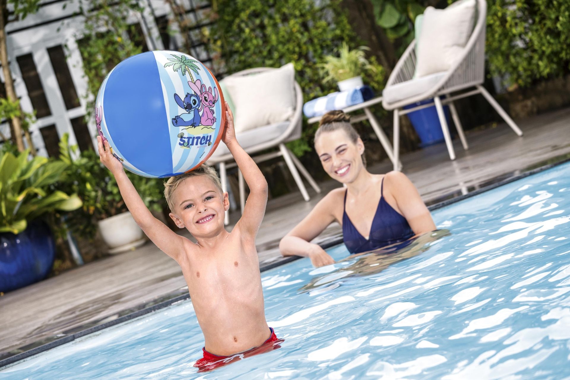 Laat uw kinderen de hele dag lang spelen met hun favoriete vriendje, Stitch, met de Disney Opblaasbare Strandbal! Deze speciale strandbal is perfect voor kinderen van 2 jaar en ouder en straalt Stitch's persoonlijkheid en energie uit, zodat speeltijd met deze kleurrijke bal met de eigenzinnige personages altijd geweldig is. Het is eenvoudig op te blazen, leeg te laten lopen en op te bergen in uw tas voor uw volgende uitstap naar het strand of het zwembad. Geniet ervan op zonnige dagen op het strand of met blote voeten in het gras in het park. U en uw kinderen zullen een geweldige tijd beleven waar u ook bent!