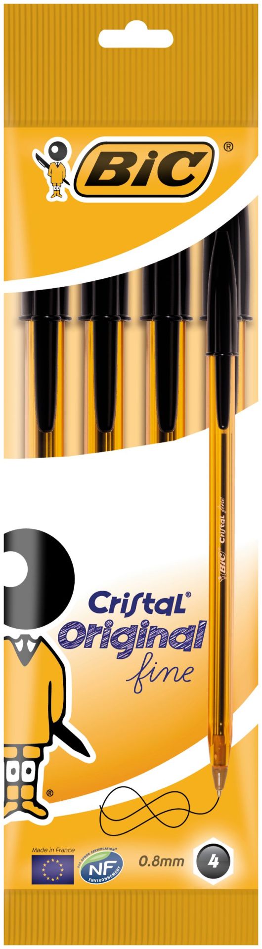 Bic Balpen Cristal Original Fine Zwart -4 stuks - Pochette