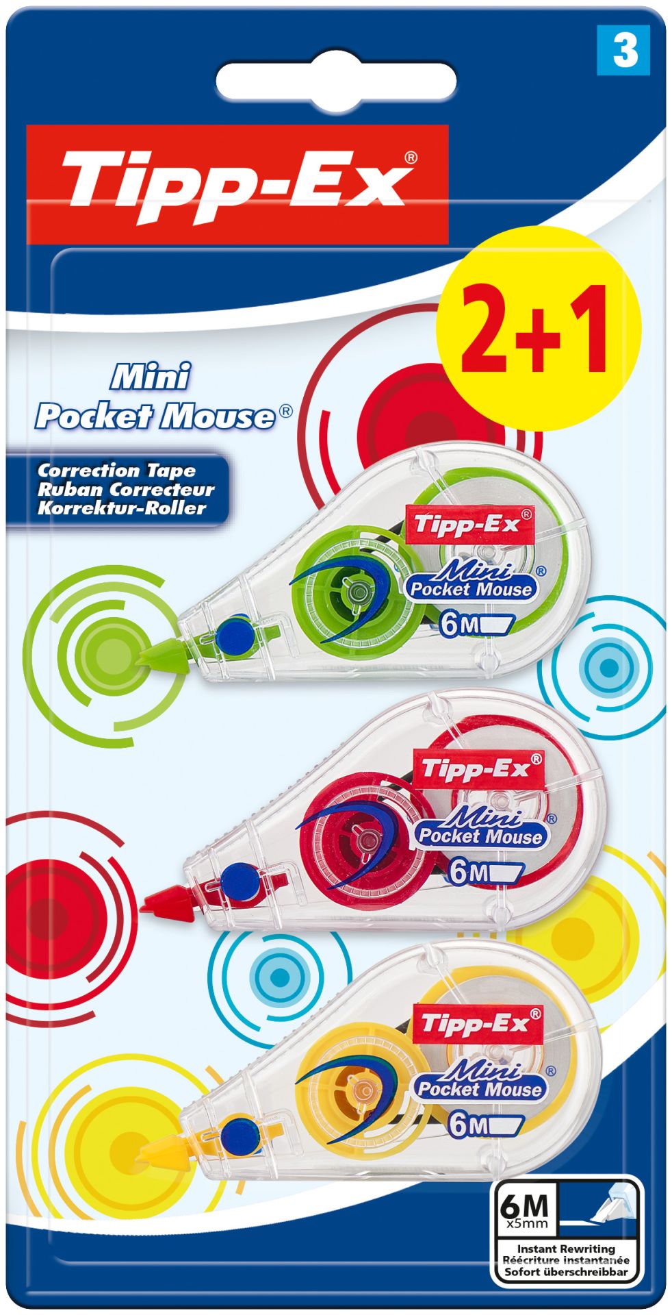 Bic Tipp-Ex Mini Pocket Mouse Fashion 2+1 gratis - Correctietape 6m - Blister