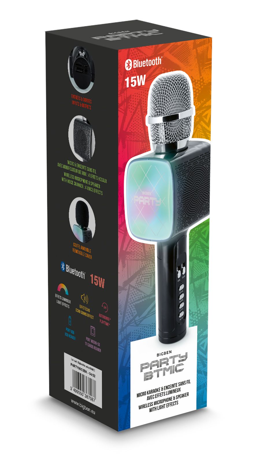 Bigben Party Karaoke Microfoon Bluetooth &Led - Black