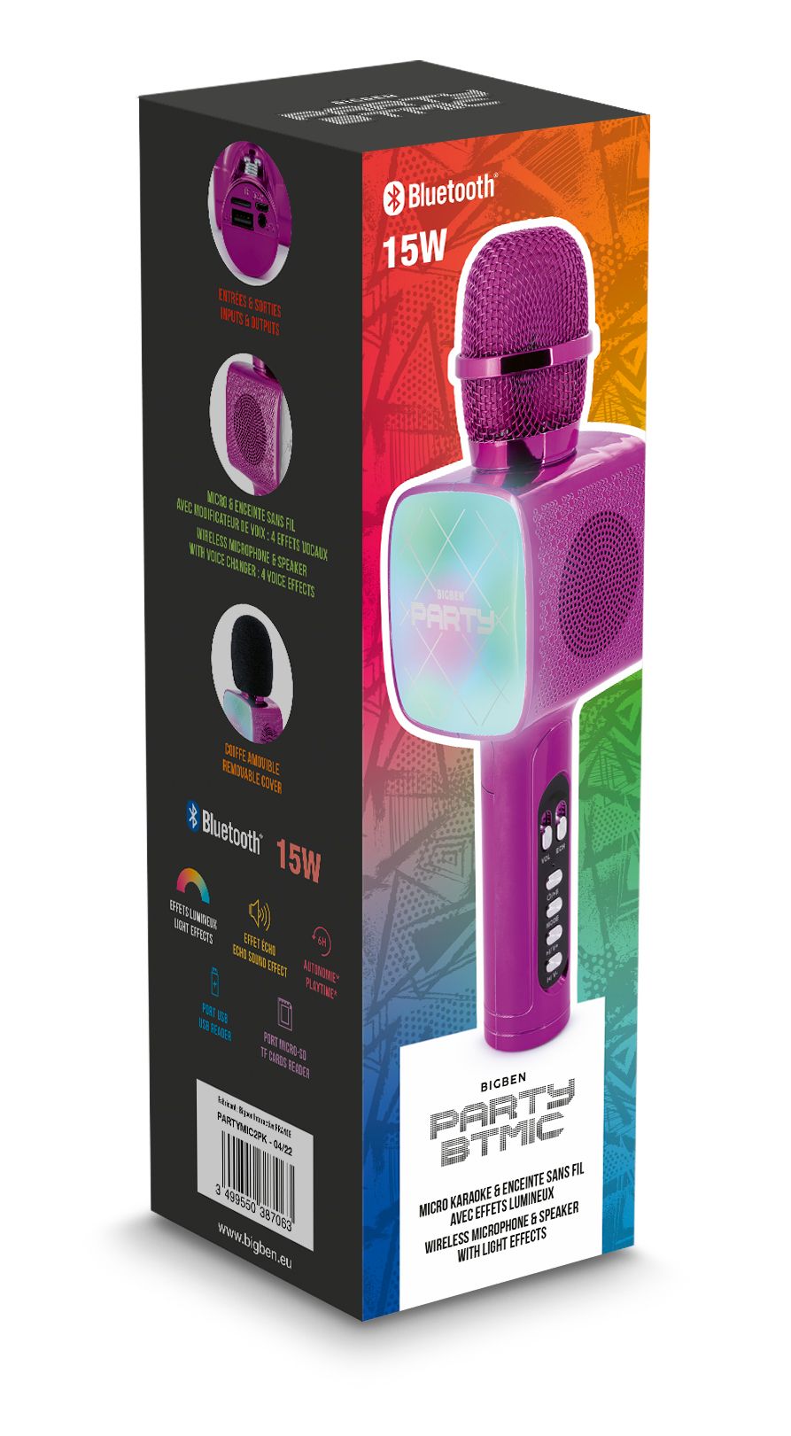 Bigben Party Karaoke Microfoon Bluetooth &Led - Pink