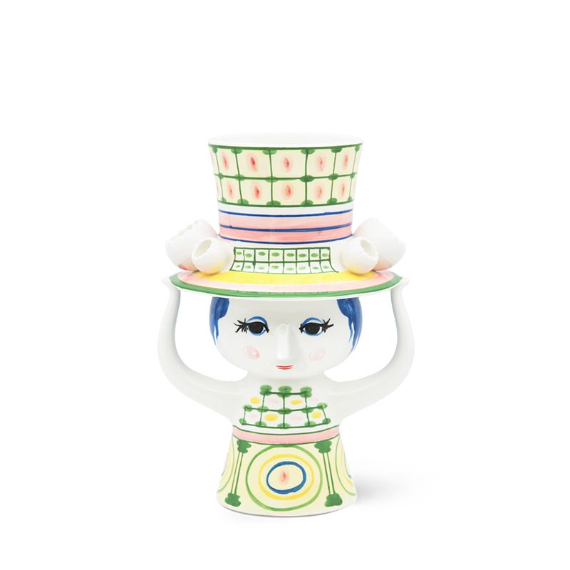 Bjorn Wiinblad Vaas Groen 24.5cm Lady with Hat - Keramiek