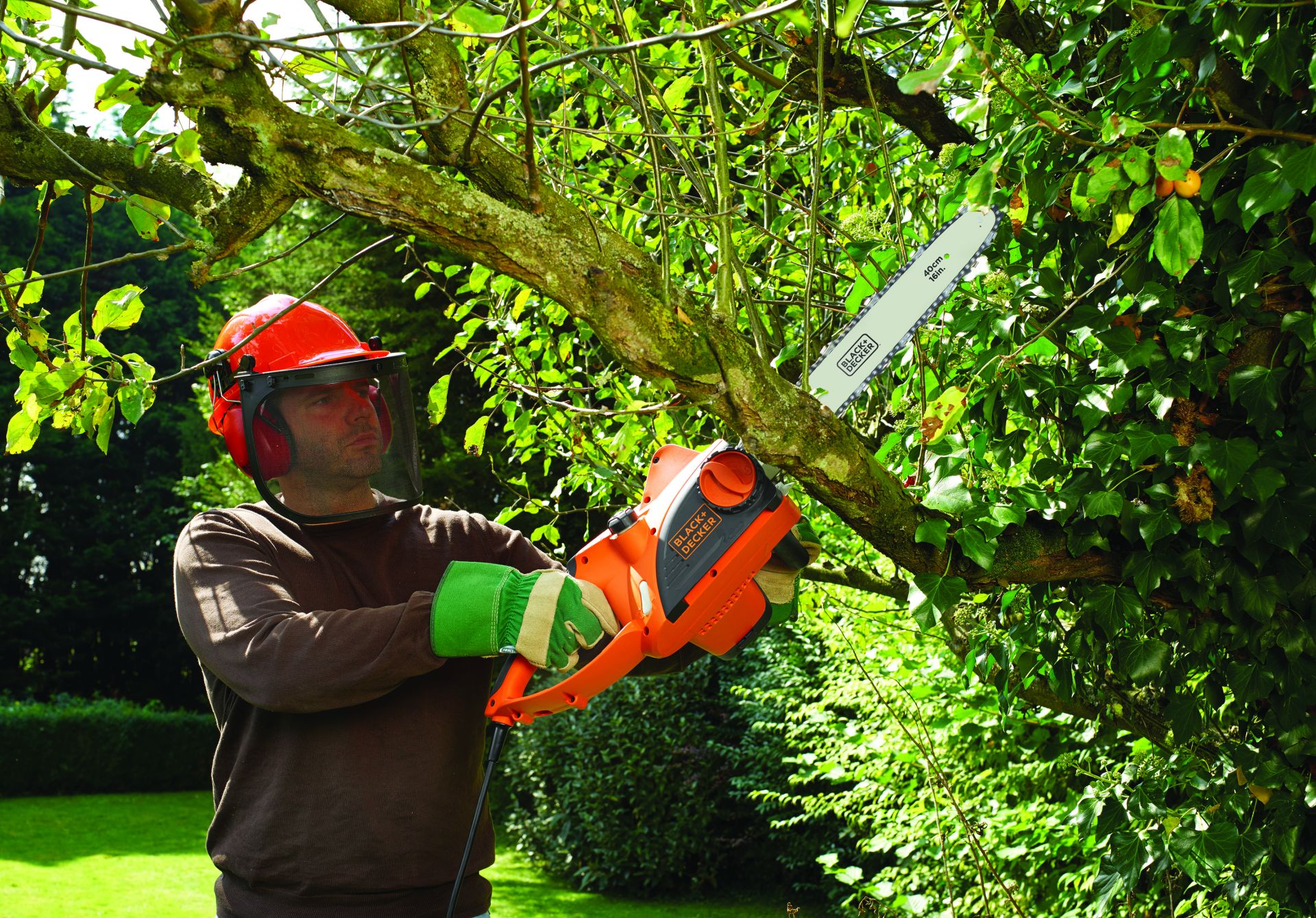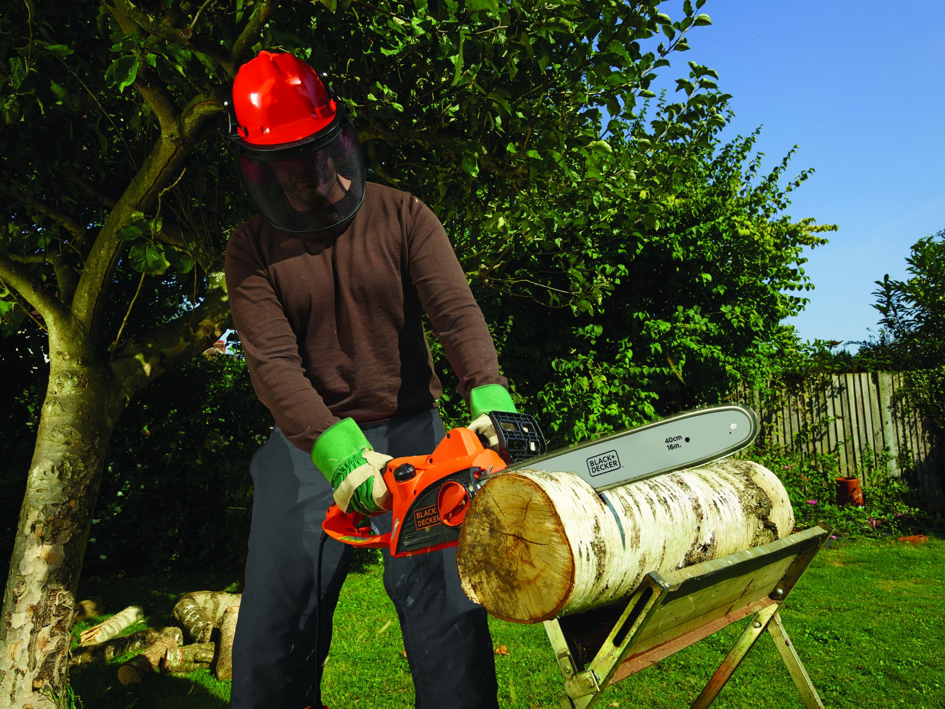De BLACK+DECKER kettingzaag zaagt vlot en snel door nat en droog hout, door zijn krachtige 2000W motor met een kettingsnelheid van 12,5m/s en zijn zwaardlengte van 40cm is ideaal voor de zwaardere zaagklussen. Het geïntegreerde, automatische smeringssysteem vermindert de slijtage van de ketting en verhoogt de zaagefficiëntie en de hardmetalen stootrand zorgt voor een betere stabiliteit tijdens het zagen.