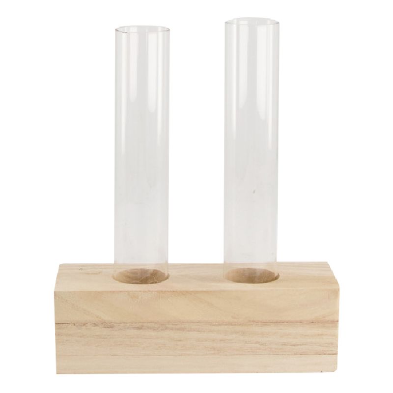 Bloemtubes Glas 2 stuks in Houten Blok 15x5x17 cm