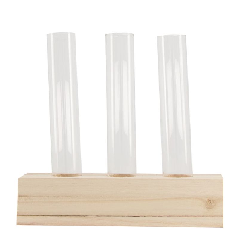 Bloemtubes Glas 3 stuks in Houten Blok 20x5x17 cm