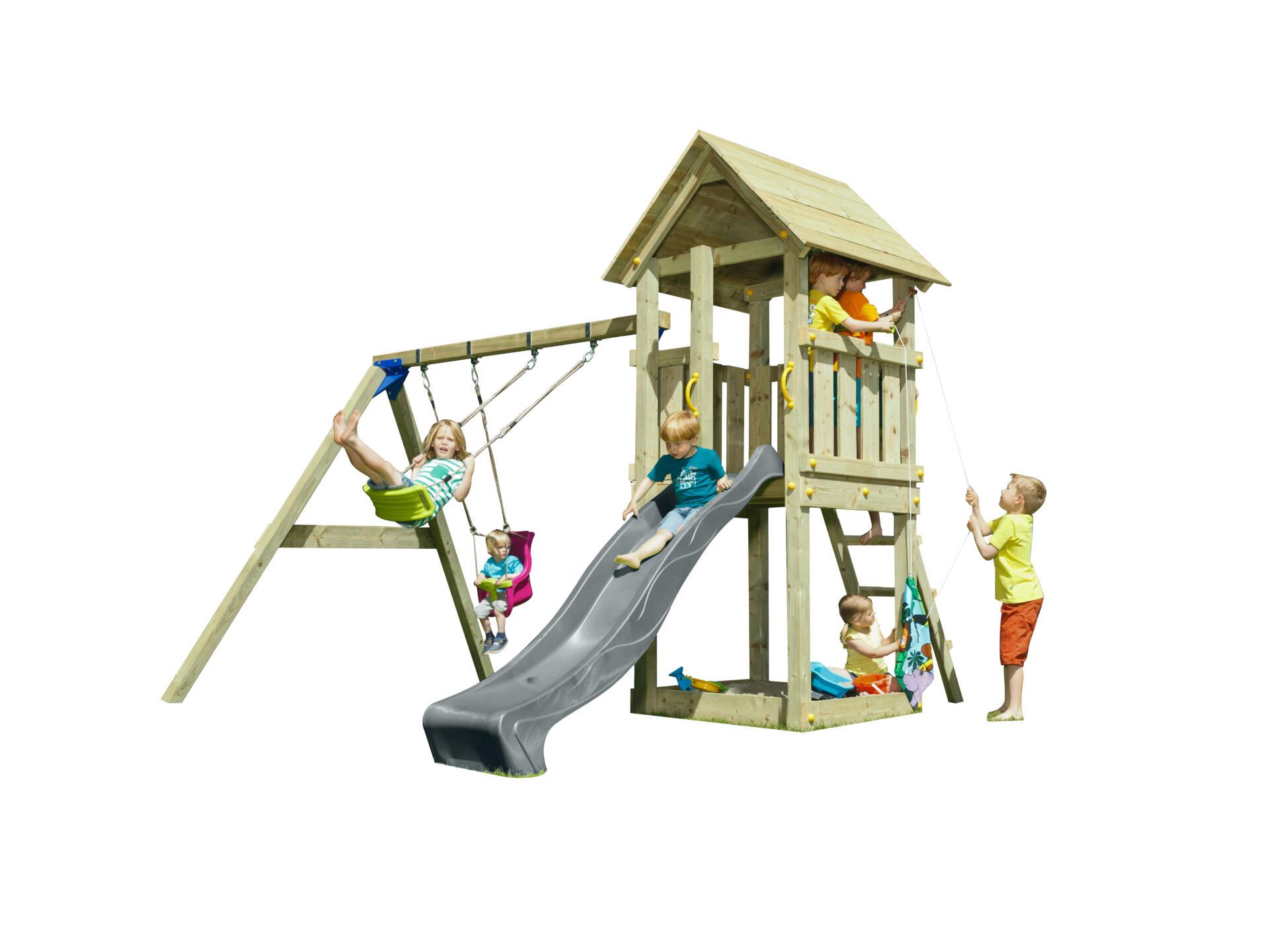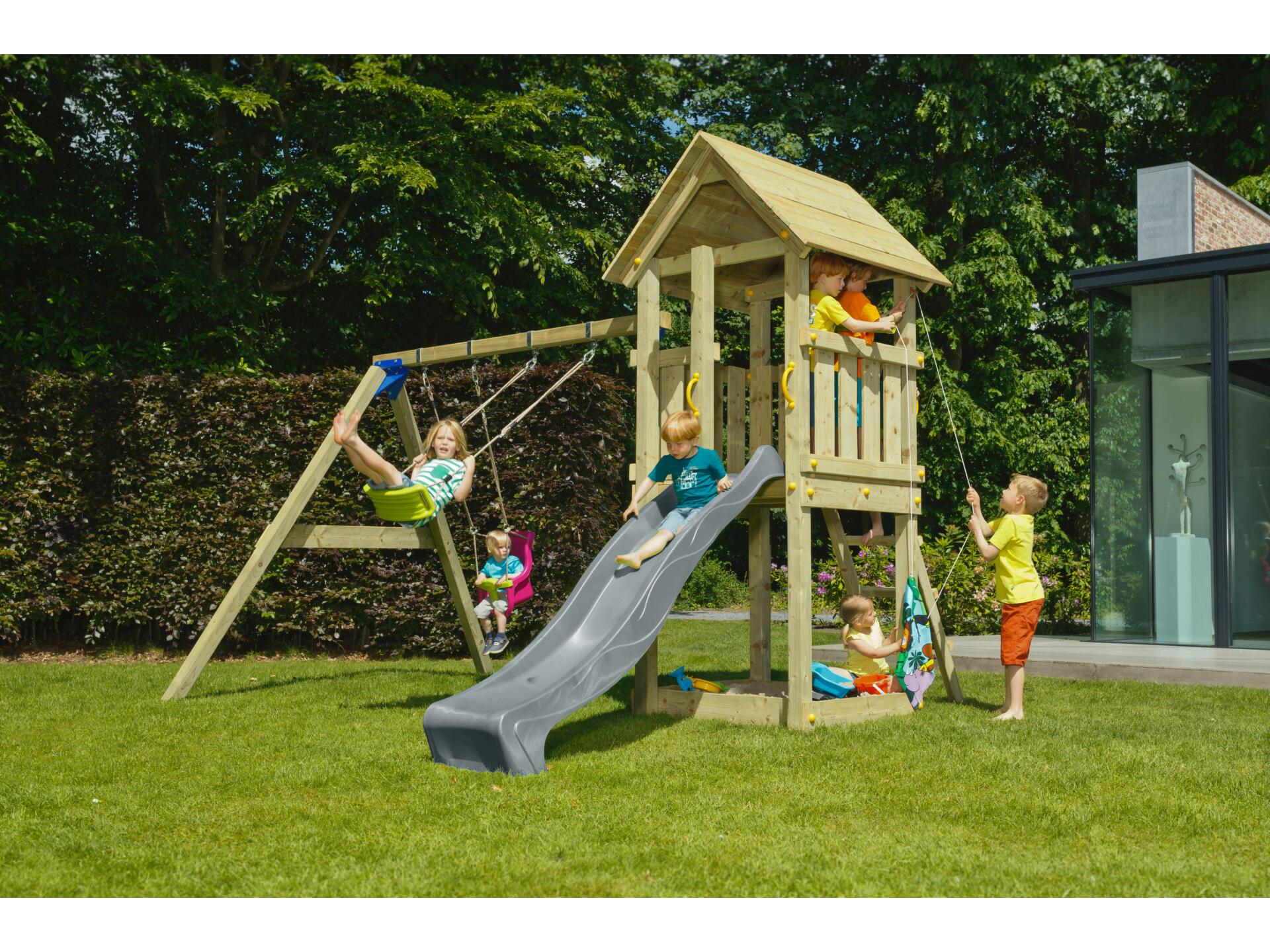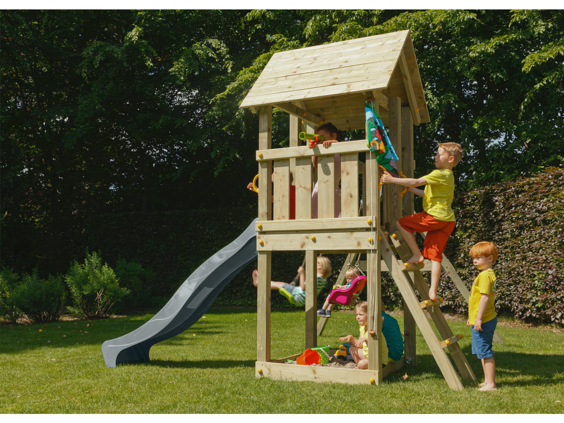 Blue Rabbit Kiosk Speeltoren met Grijze Glijbaan