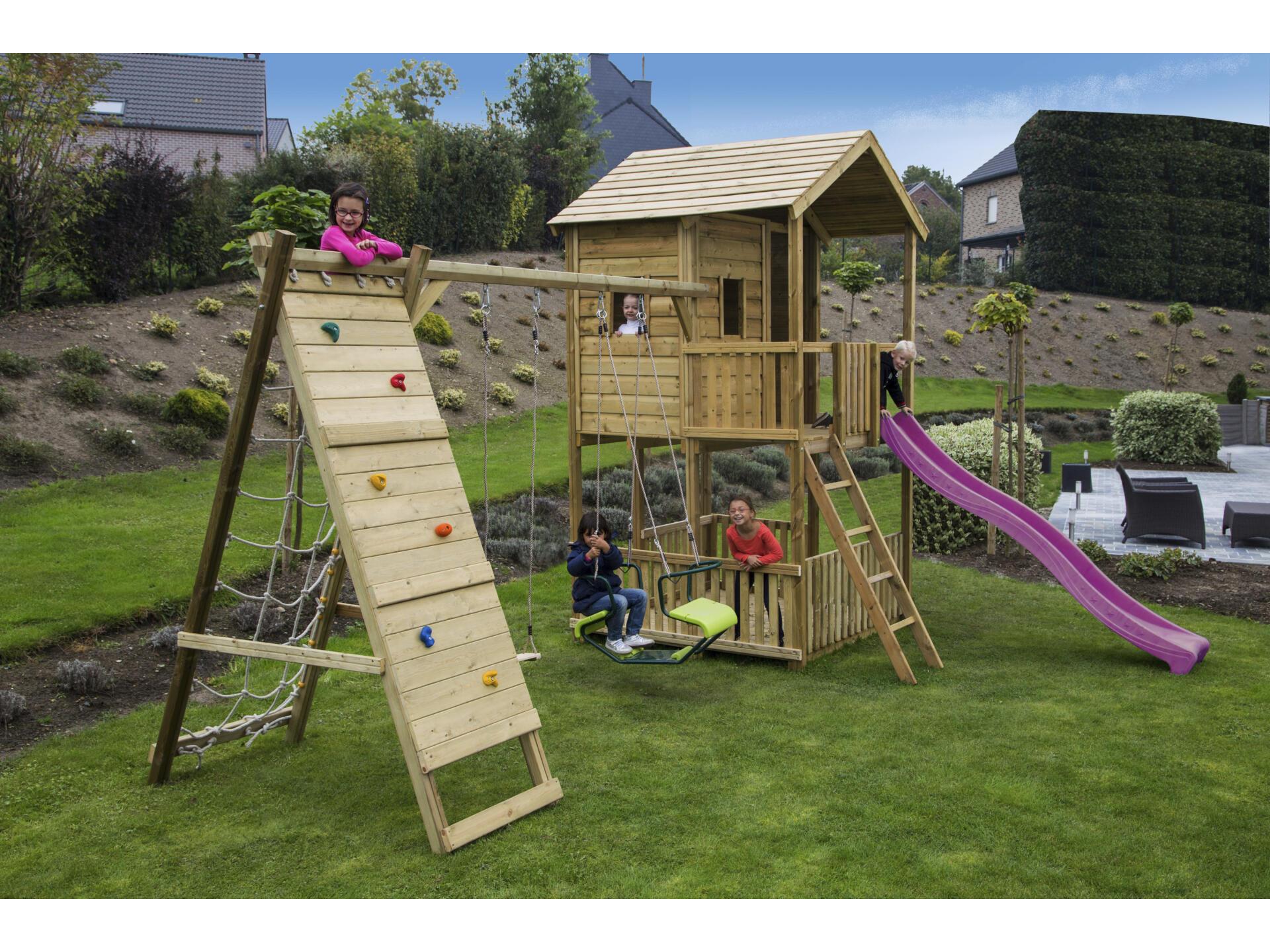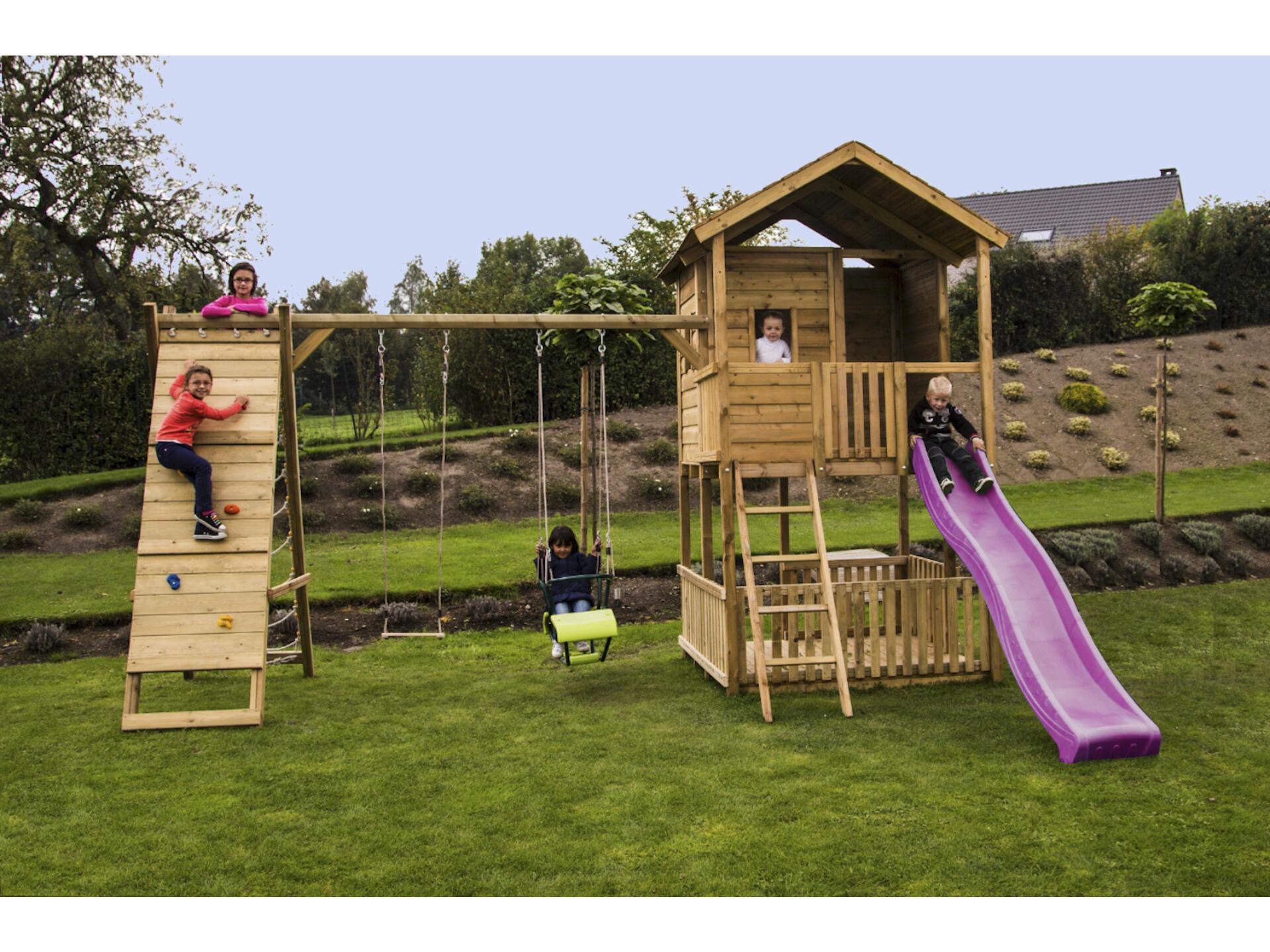 BnB Wood Mael Full Speeltoren met fuchsia Glijbaan