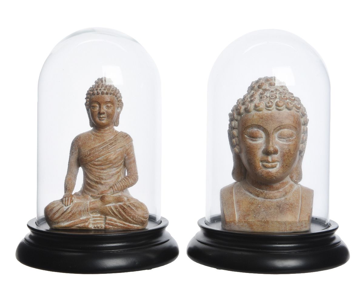 Boeddha in Stolp 20x28.5 cm - Glas - Naturel - assorti - prijs per stuk