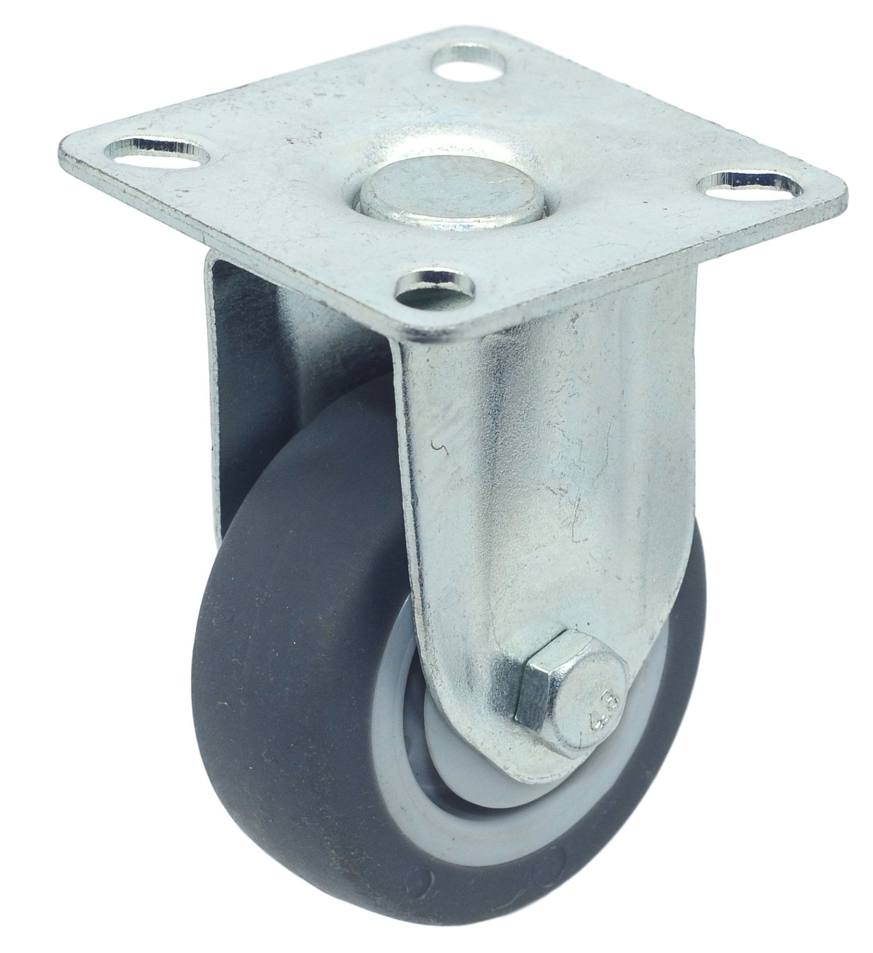 Bokwiel Grijs Diameter 50mm TP rubber - plaatbevestiging