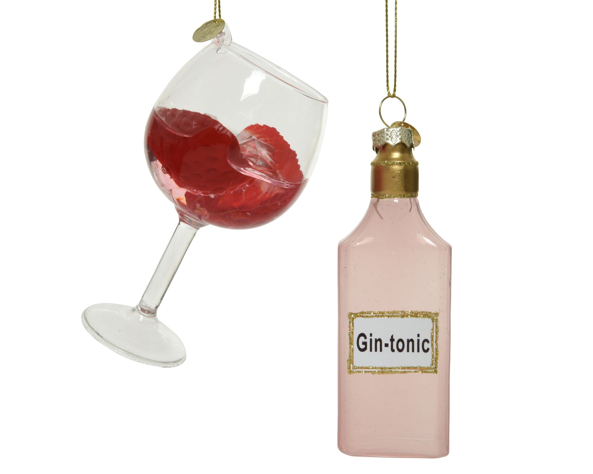 Boomhanger Glas Gin-Tonicfles met Glas Roze set 2 stuks