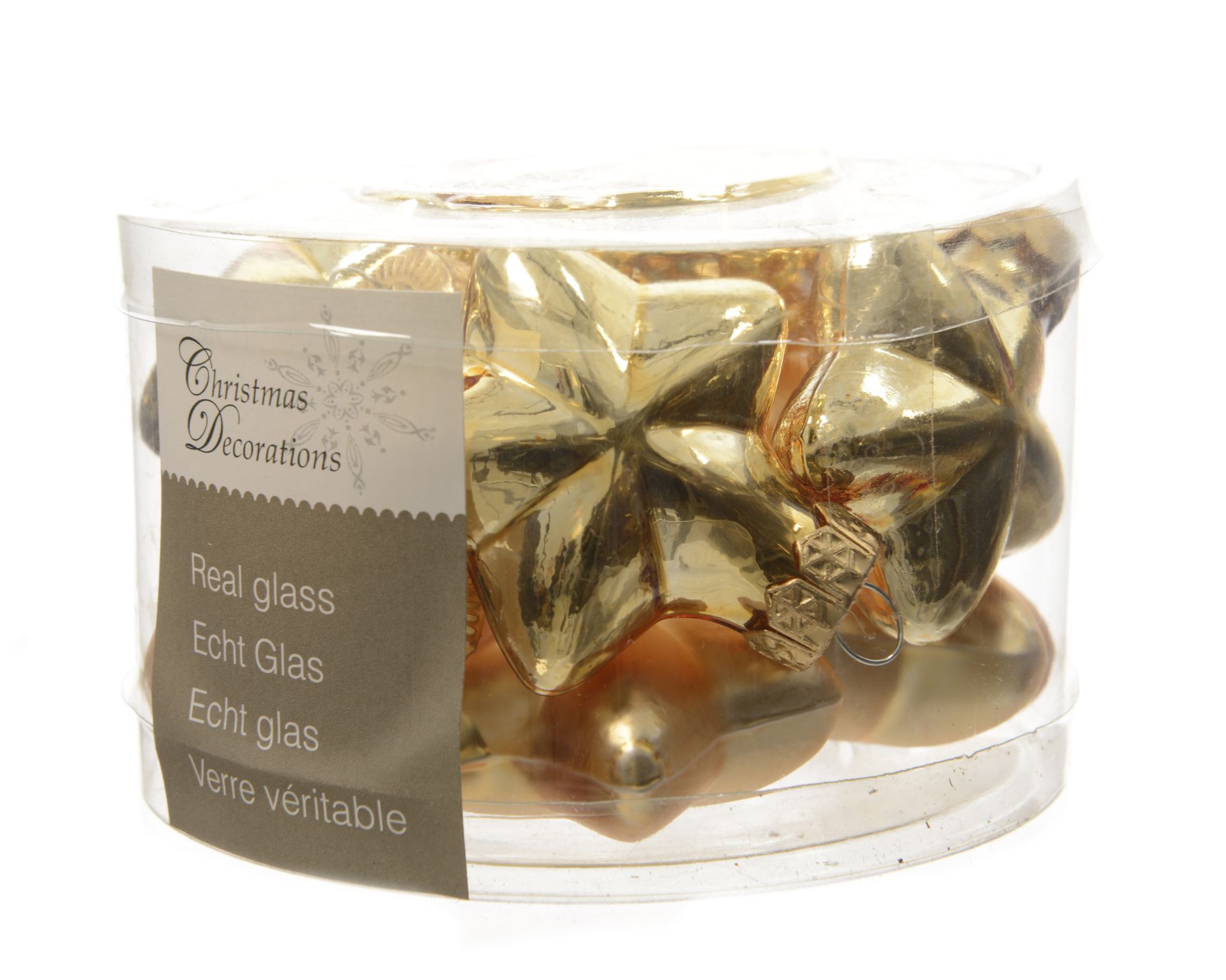 Boomhanger Glas Ster Lichtgoud set 12 stuks - 4.5x2x4 cm - Mat/Glanzend