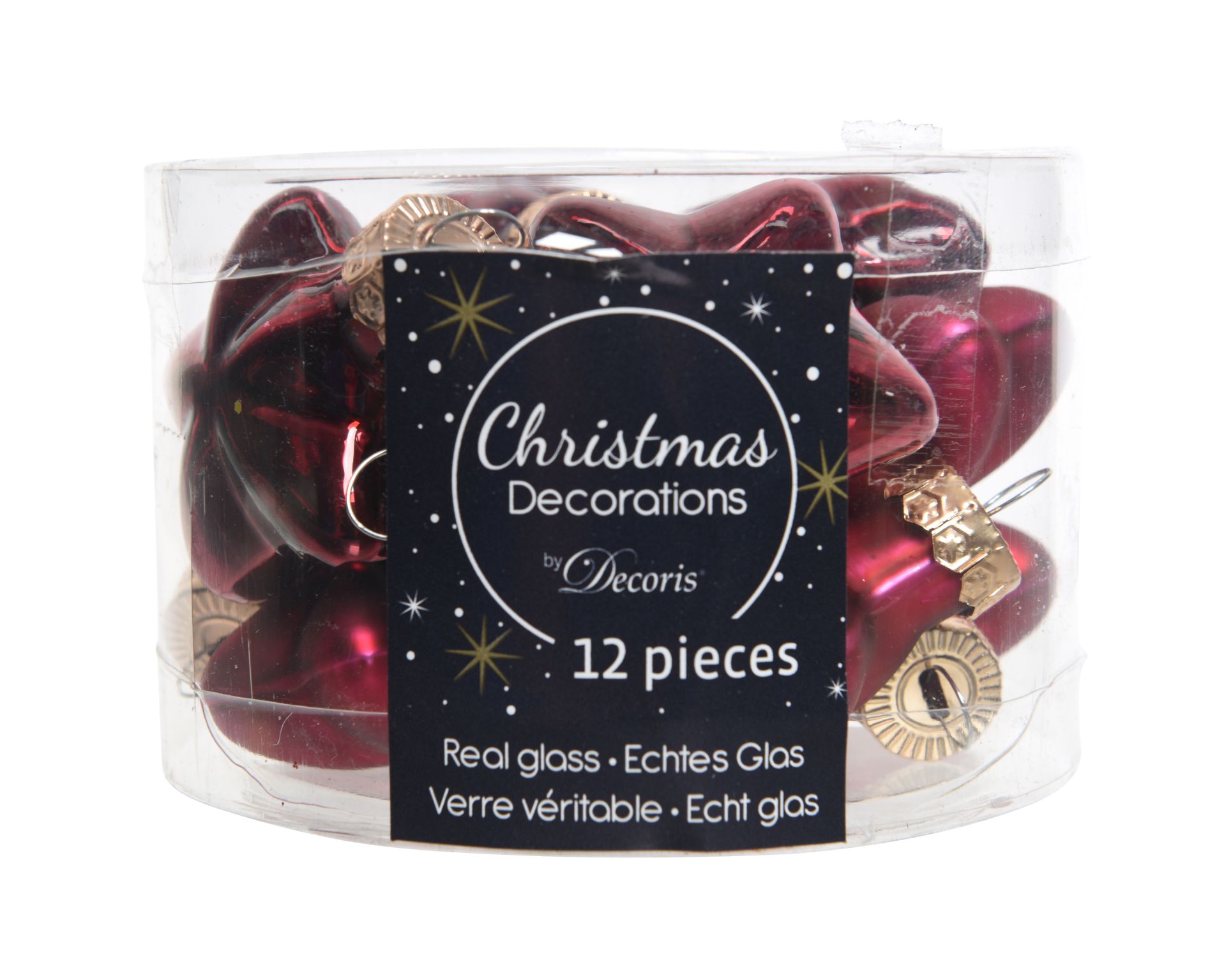 Boomhanger Glas Ster Ossenbloed set 12 stuks 4.5x2x4 cm - Mat/Glanzend