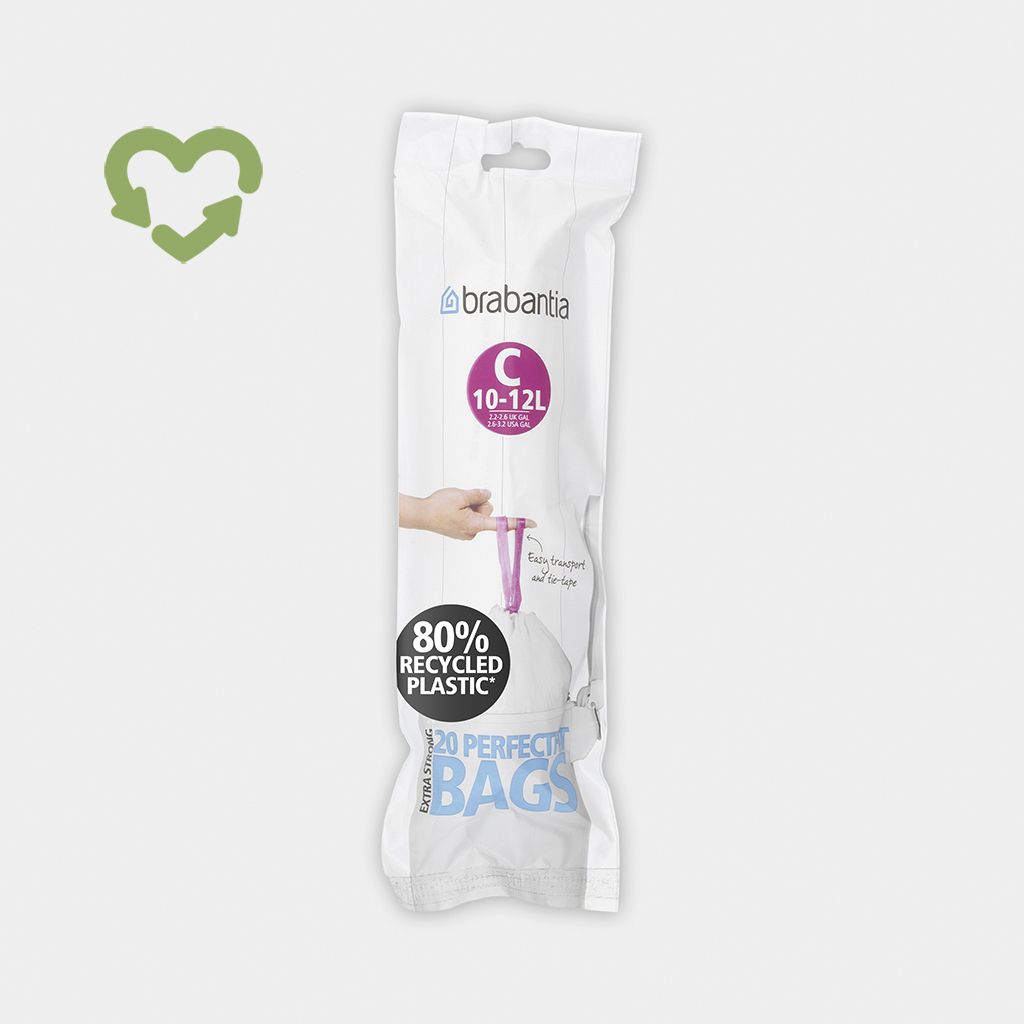 Brabantia Afvalzakken 10-12l Perfectfit Recycled Code C 20 stuks - met Trekbandsluiting - 100% Recycled