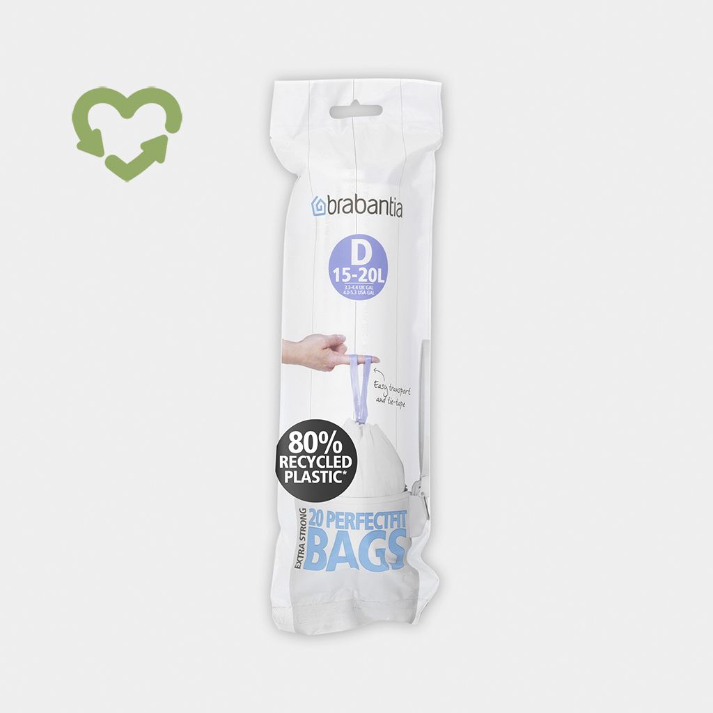 Brabantia Afvalzakken 15-20l Perfectfit Recycled Code D 20 stuks - met Trekbandsluiting - 100% Recycled