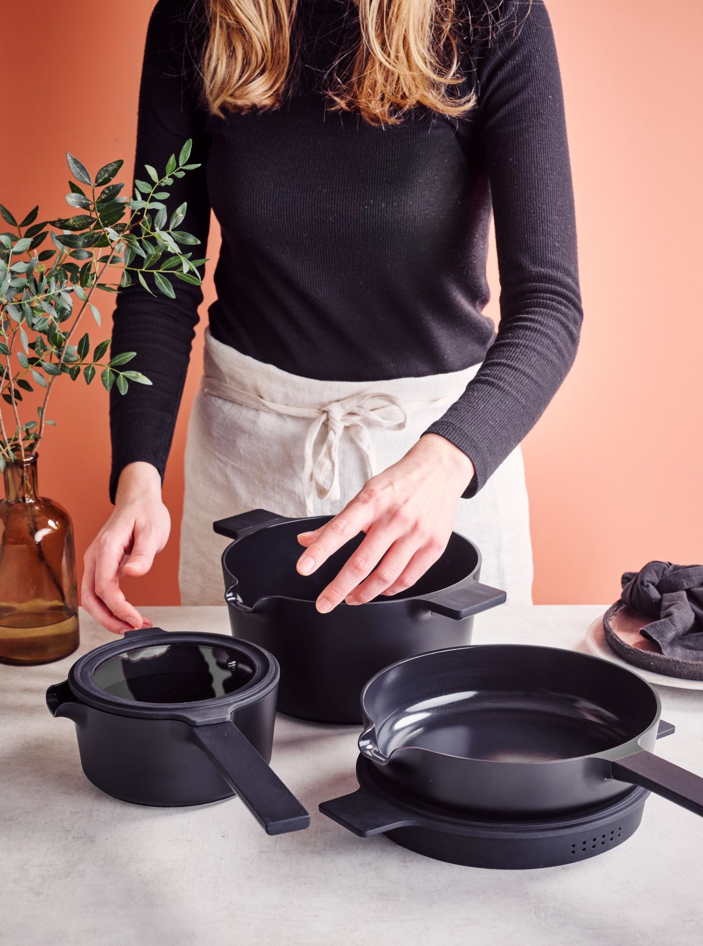 Brabantia Pannenset Compact Black 3-delig - Recycled Aluminium - Antikleef