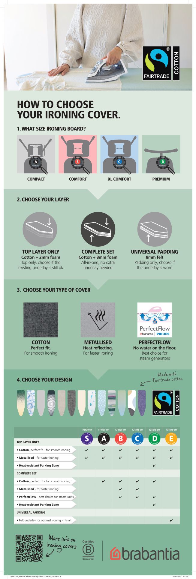 Brabantia Strijkplankhoes C 124x45cm PerfectFlow Spring Bubbles - Complete Set - Katoen - 2mm Schuim