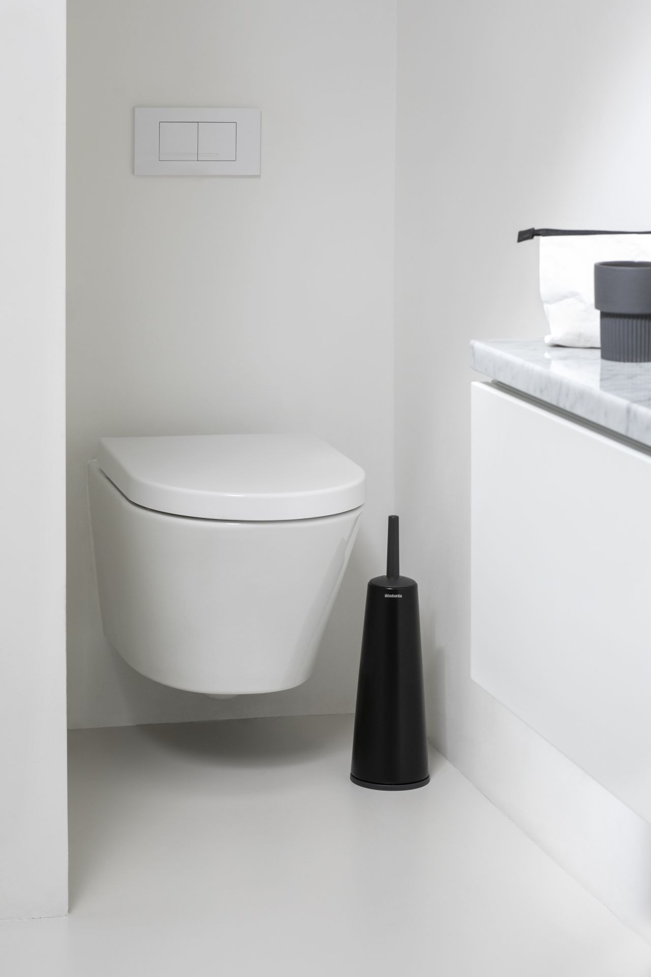 Brabantia Toiletborstel ReNew Matt Black met Houder RVS - 12x42 cm