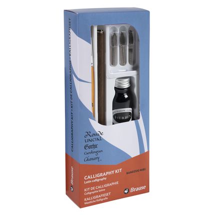 Brause Set Kalligrafiepennen 6-delig 3 Pennen + Houder + Penseel + Inkt
