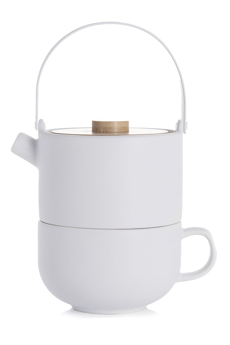 Bredemeijer Silhouet Theekan Tea For One Umea - Wit - met Bamboedeksel
