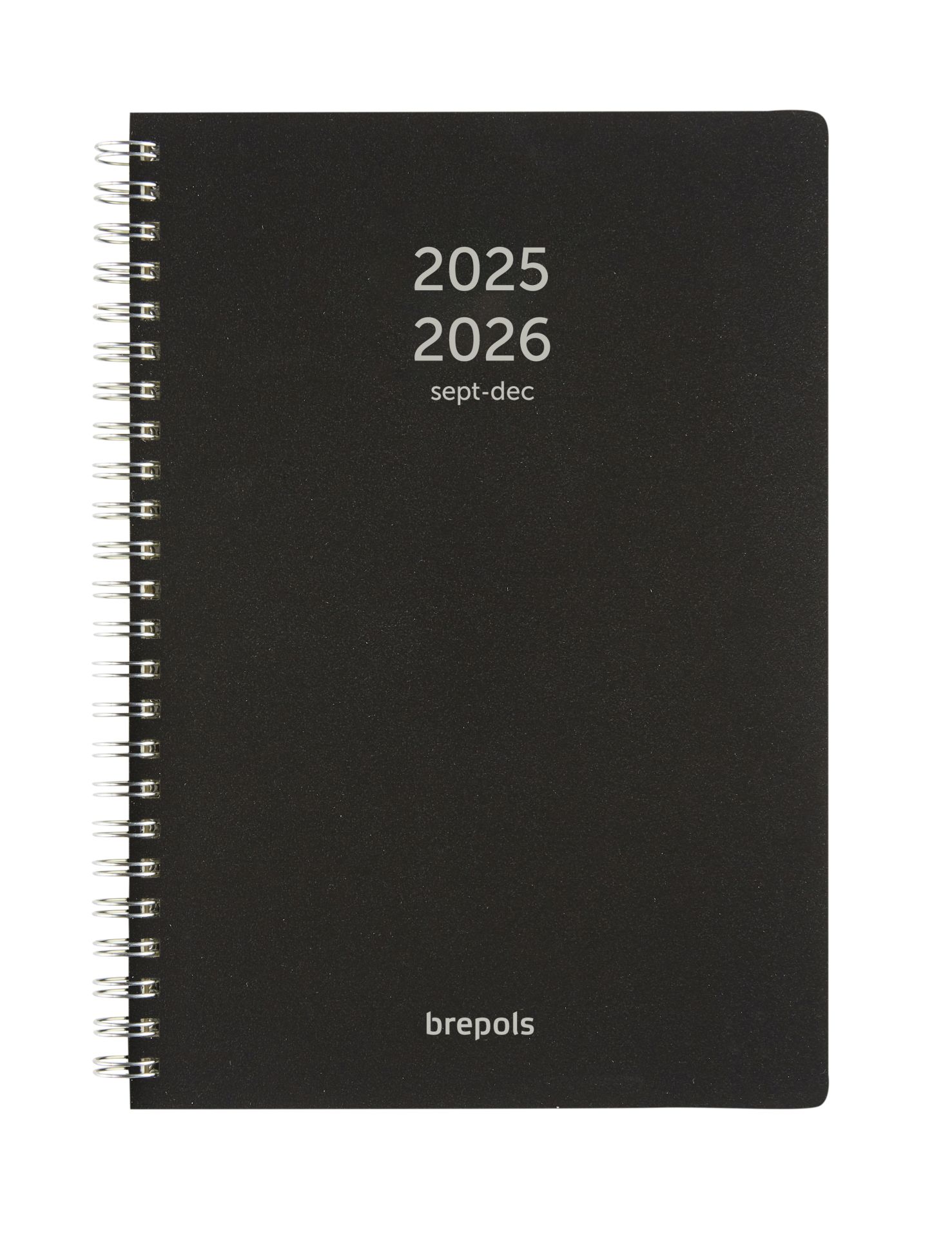 Brepols 16M Agenda 2025-26 Bretime Polyprop 1week/2pag Zwart Spiraal 14.8x21 cm