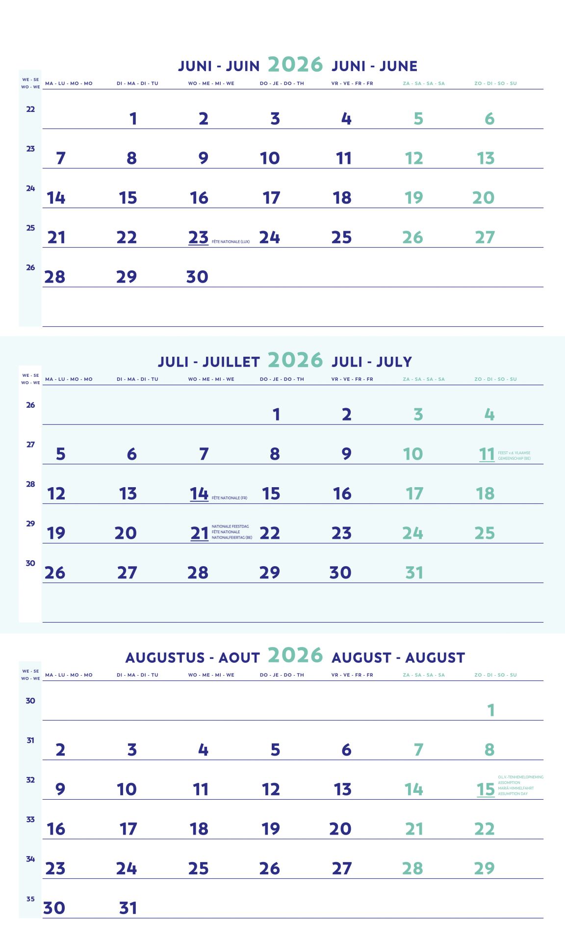 Brepols 3-Maandskalender 2026 - 30x43 cm