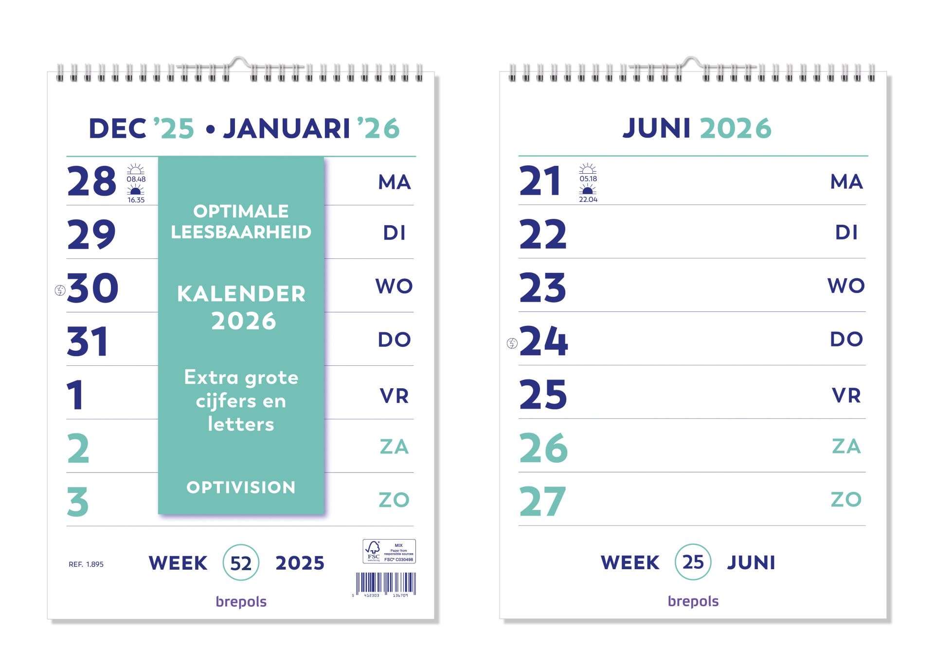 Brepols Kalender 2026 Optivision Wire-O 21x29.7 cm