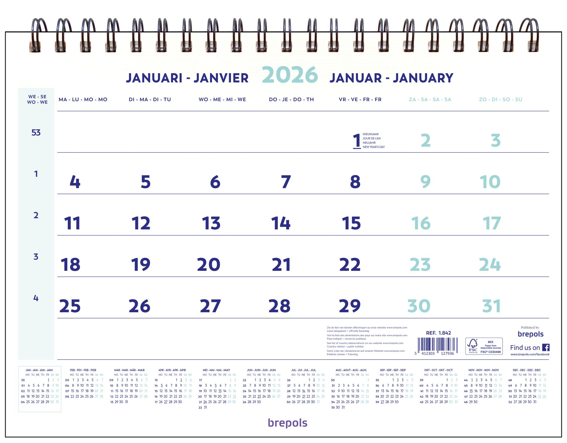 Brepols Maandkalender 2026 - 43x31.5 cm