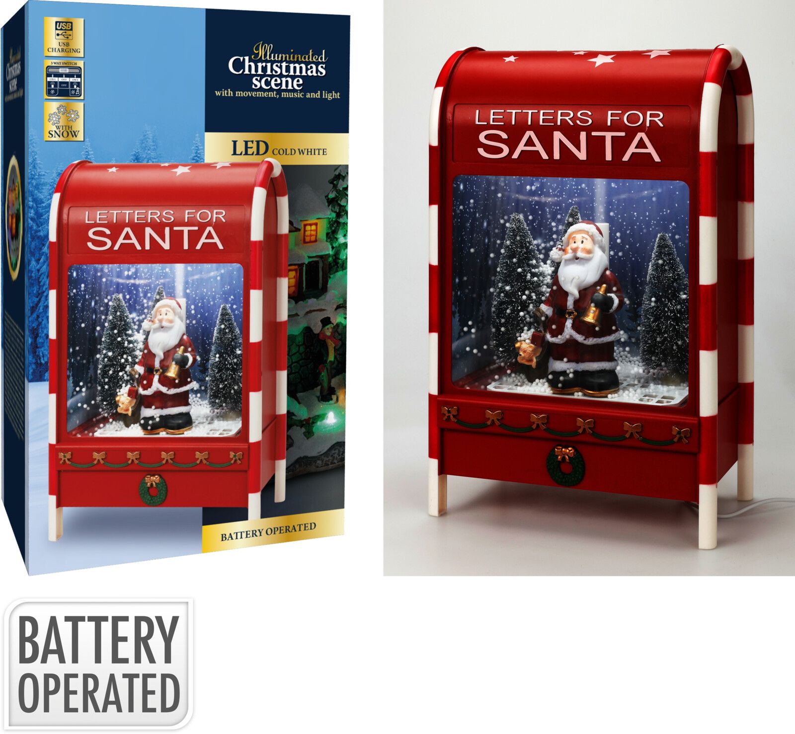 Brievenbus LED met Sneeuw & Muziek - 25x15x40 cm - 4 led - Koud Wit - op Batterijen (excl.)