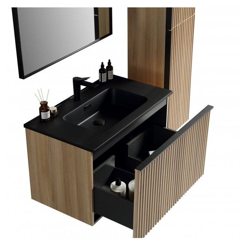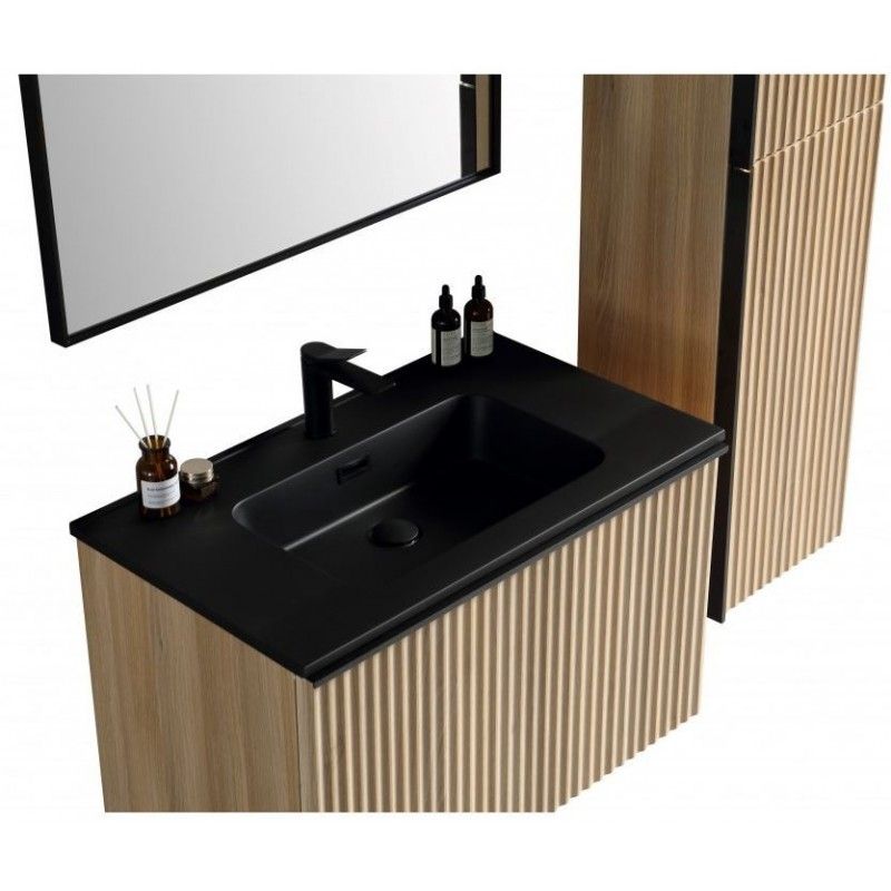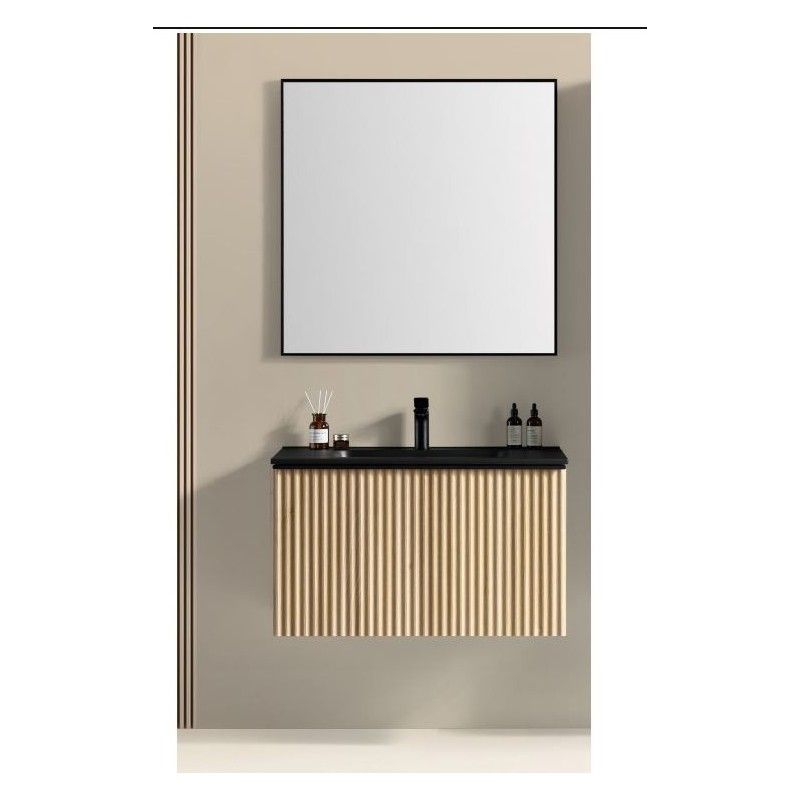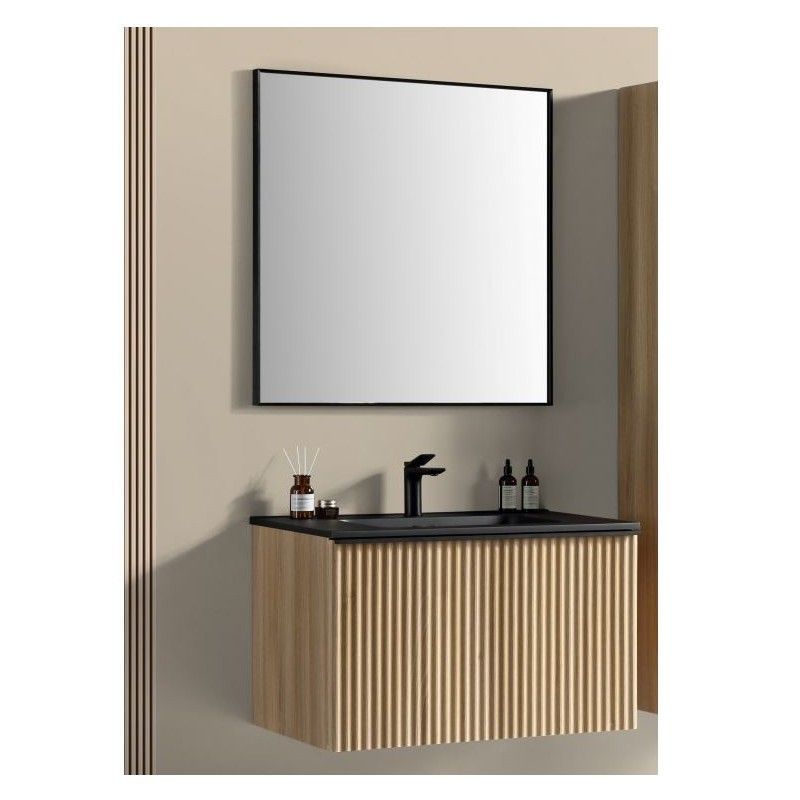 Brunella Onderkast + Wastafel Zwart + Spiegel 80 cm Eiken