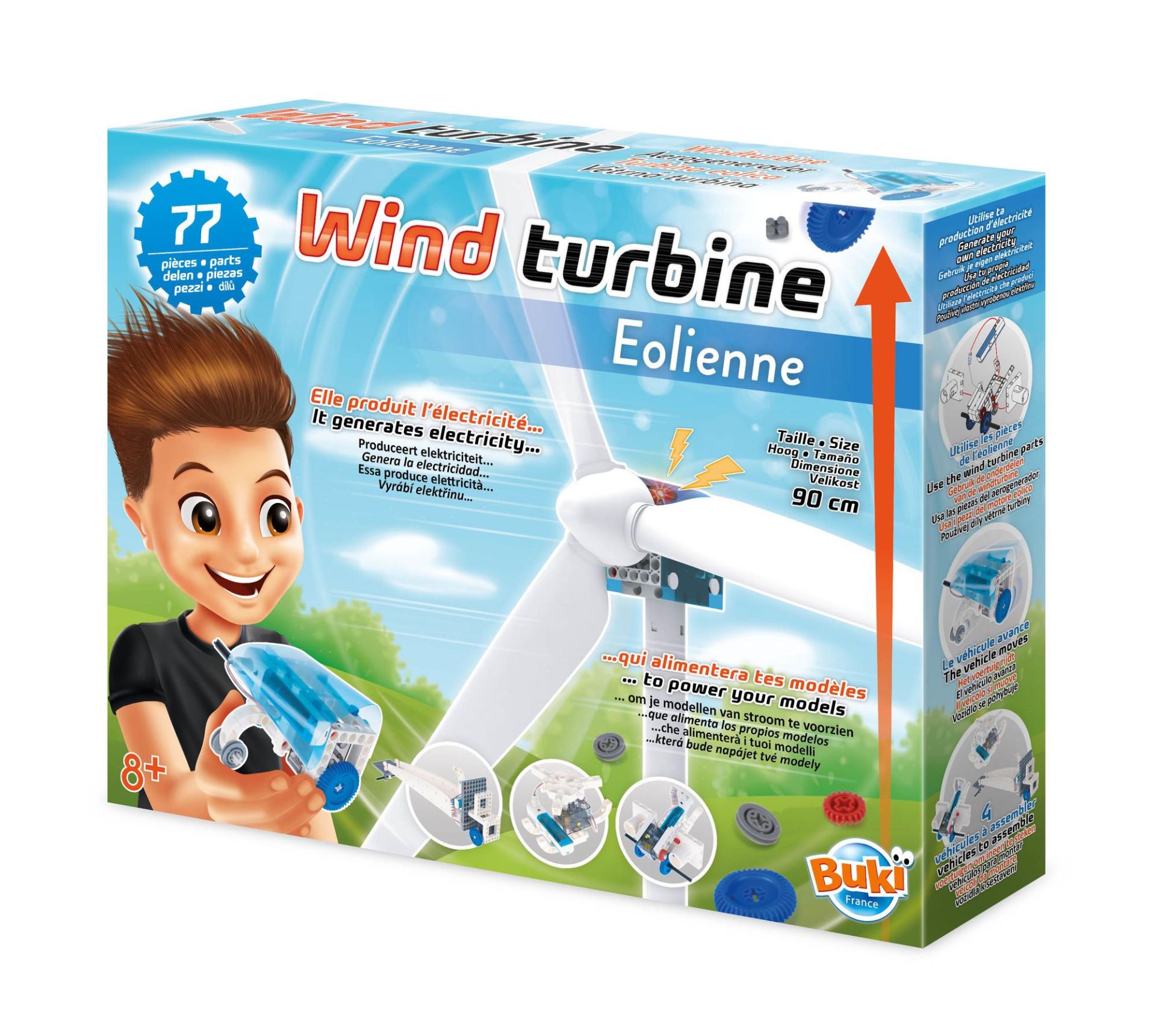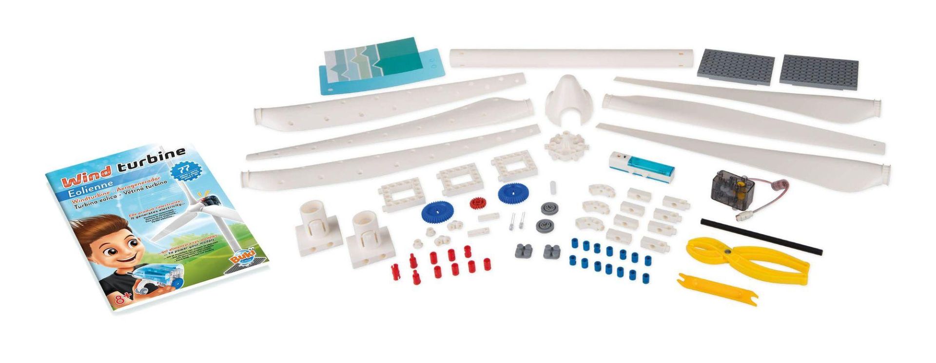 Buki Windmolen 90 cm, 77 delig, laadt een batterij op met de wind