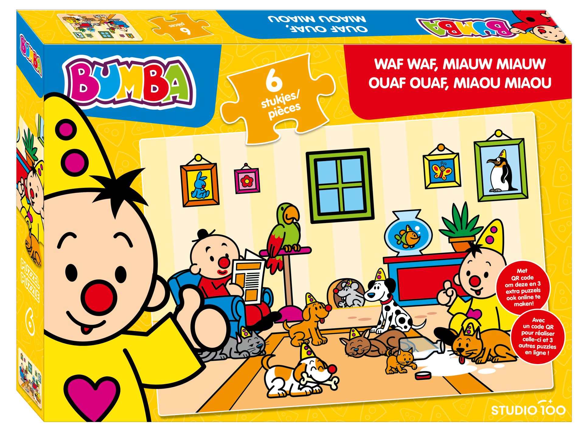 Bumba Puzzel Waf Waf, Miauw Miauw 6 stuks