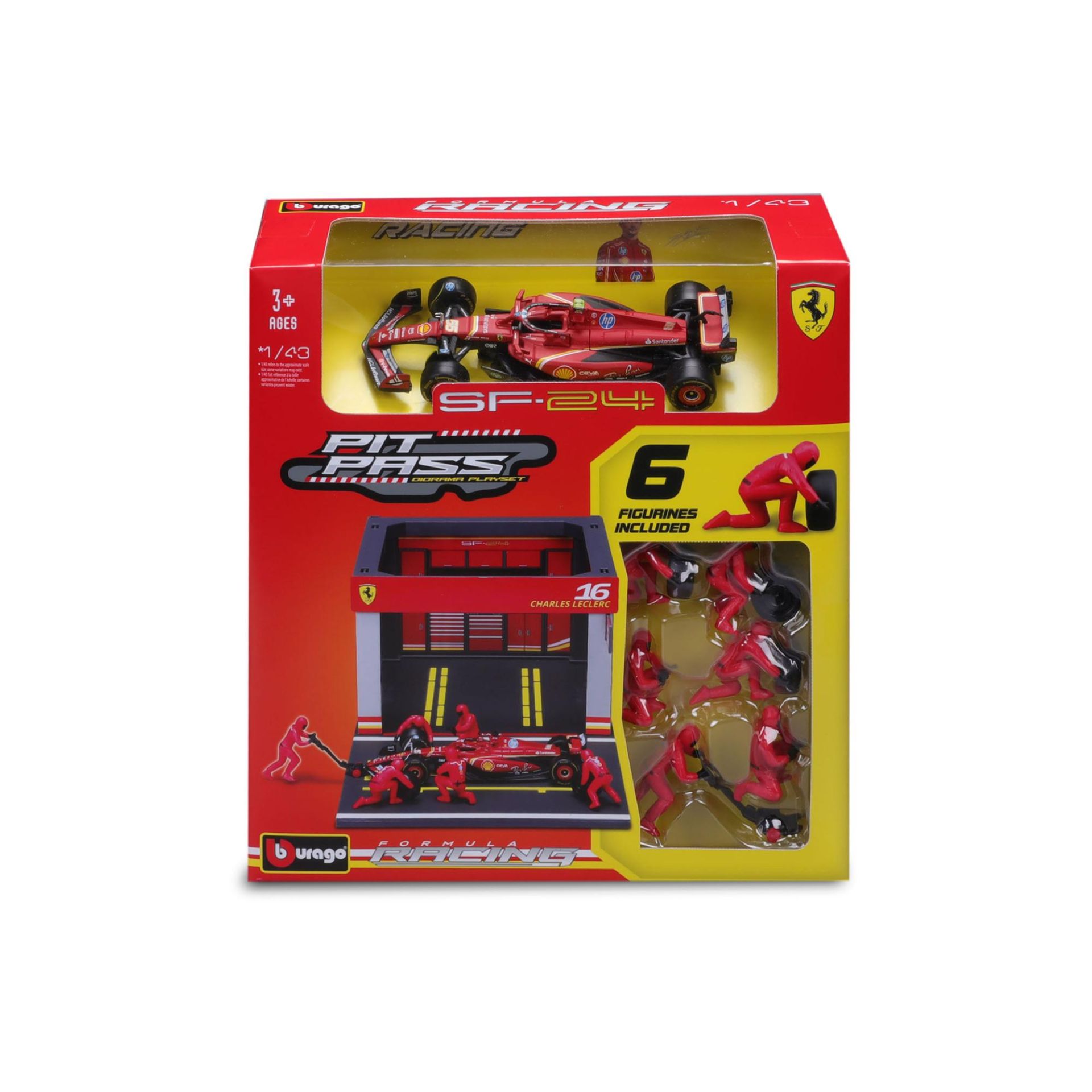 Burago Ferrari Pit Pass schaal 1:43 met Charles Leclerc