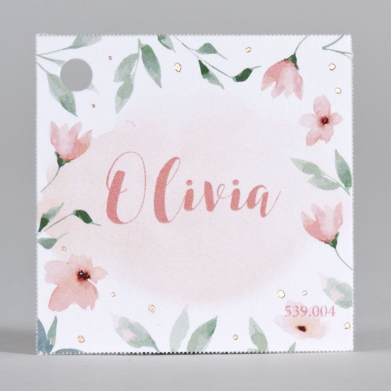 Buromac Kaartje voor Doopsuikerdoosje Wit - Rose Aquarelbloem Goudfolie 40 mm