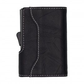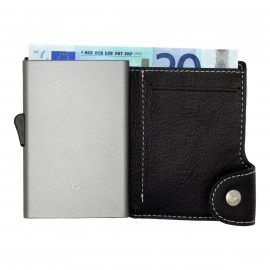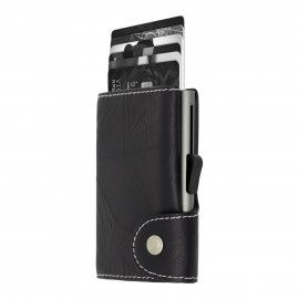 C-Secure Kaarthouder/Portefeuille Leder 4-7 Kaarten - Black - Embossed White